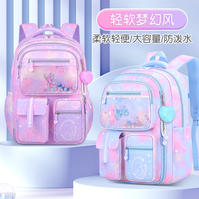 小学生女子向けのかわいいリュックサック、3456年モデル、女の子向け新作、おしゃれで軽量、高品質、負担軽減、脊椎保護機能付きバックパック