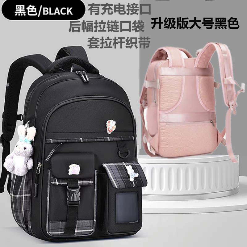 2024邵東女子学生のリュックサックは軽くて背もたれの防水の通気性の多層の大容量の小学生のカバンを負担します。
