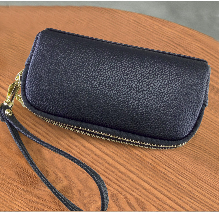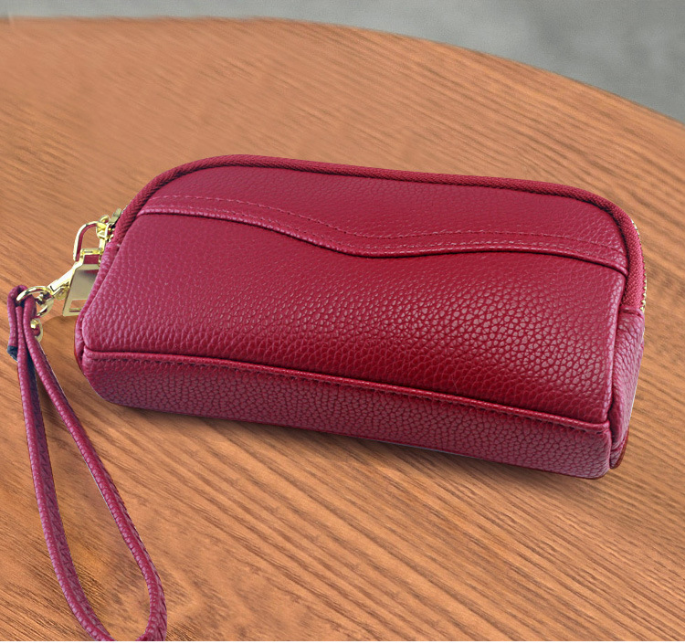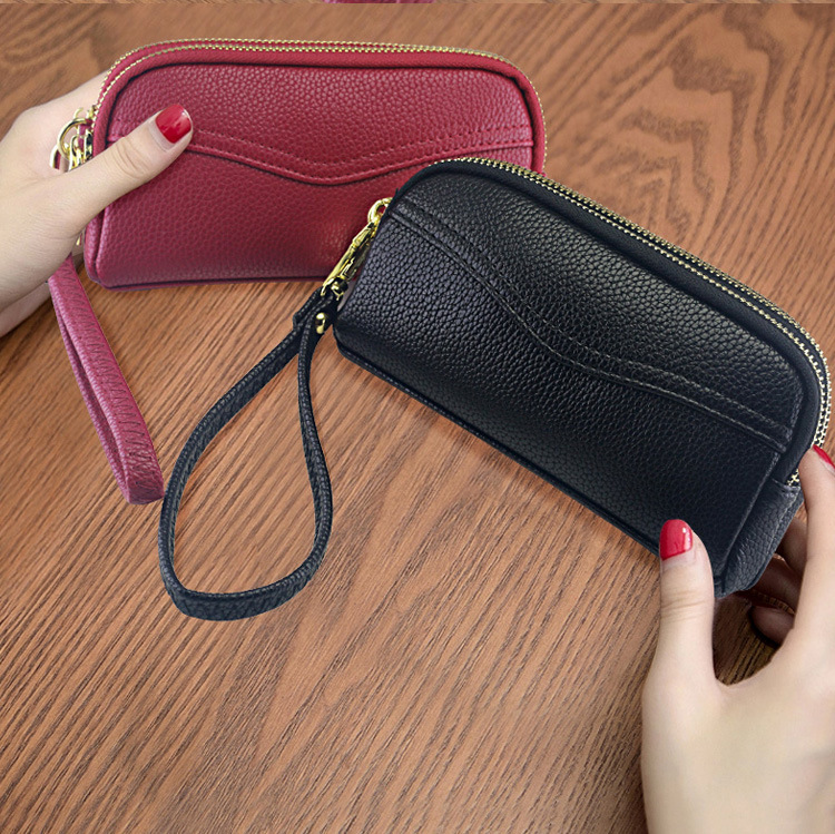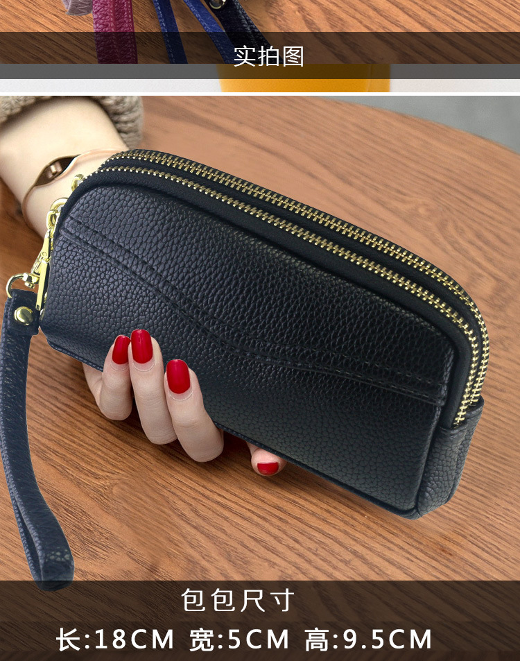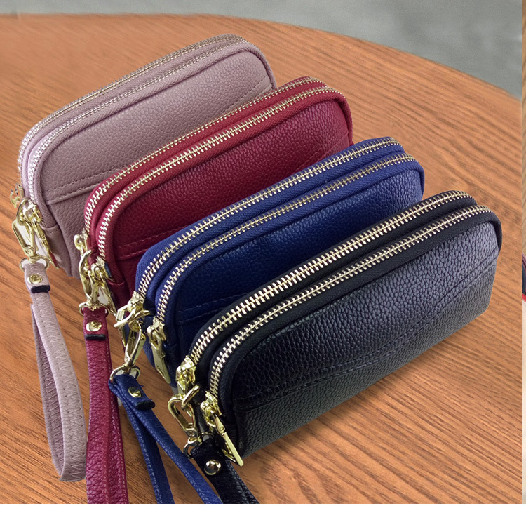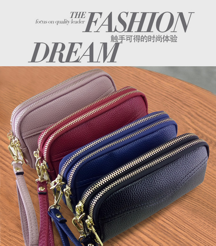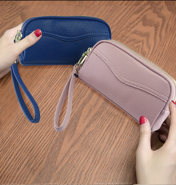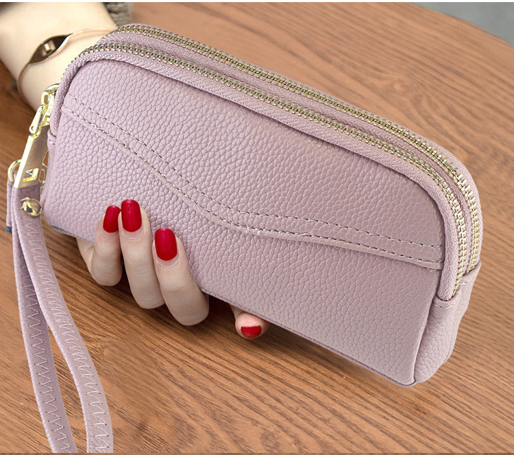低価格卸売り女性二重ハンドバッグ質感柔らかい価格特恵ダブルジッパー携帯バッグ手首バッグ小包