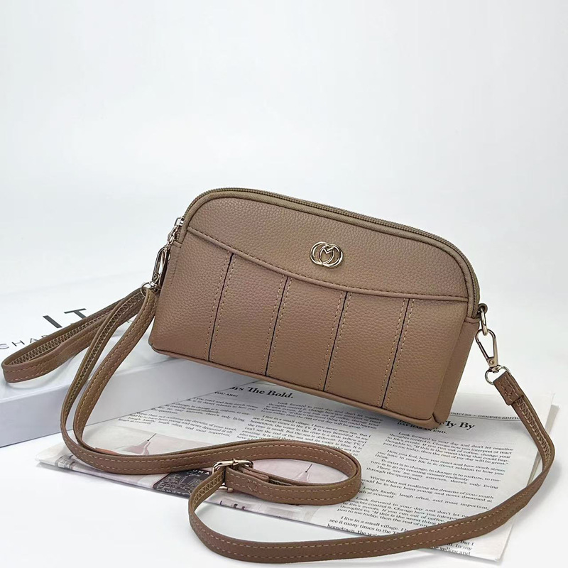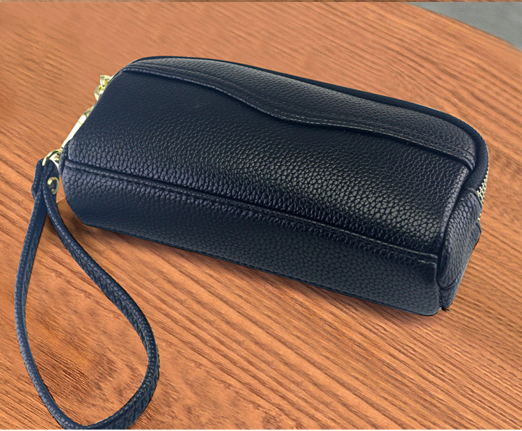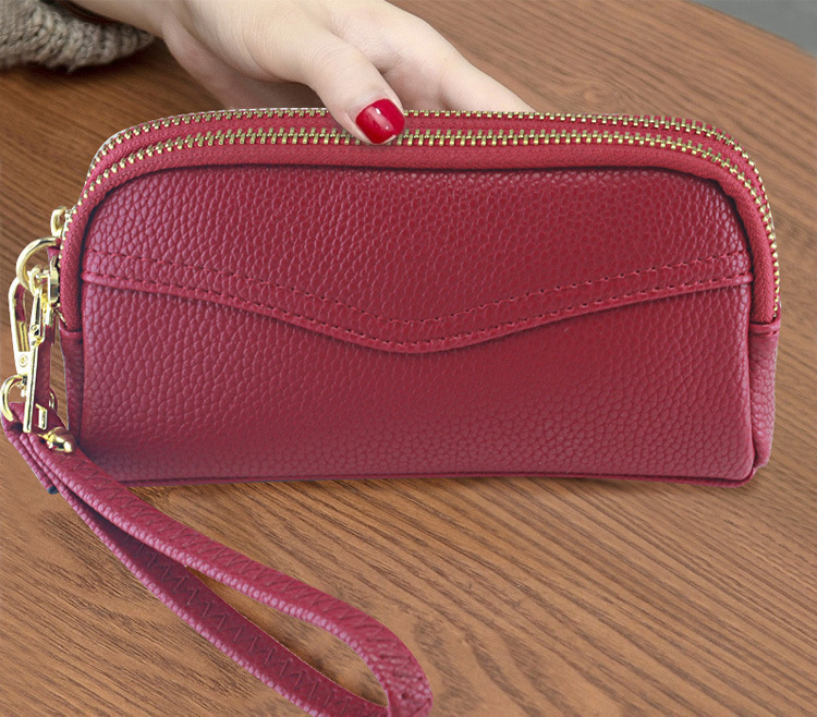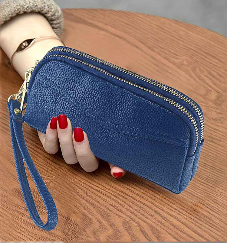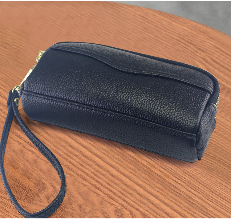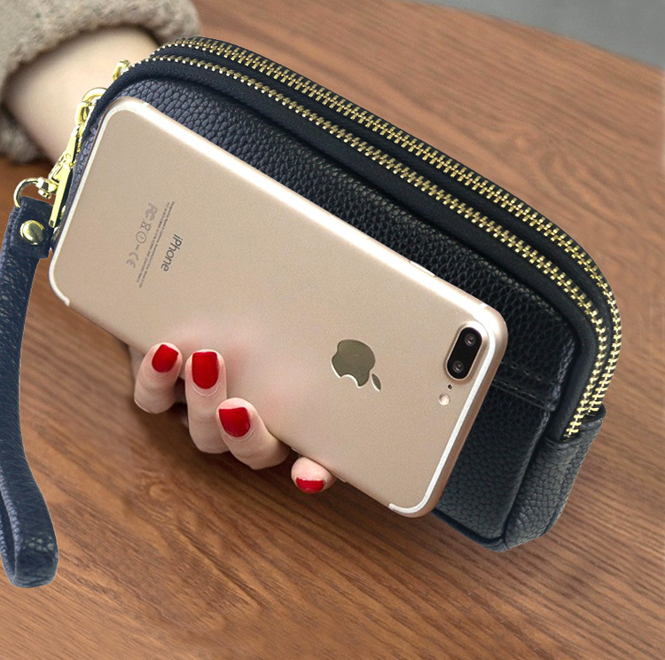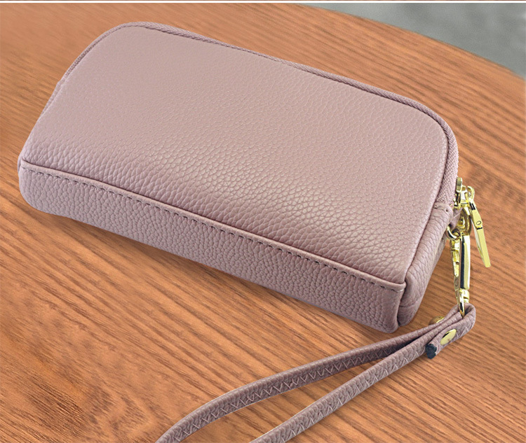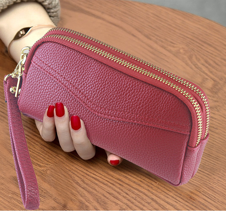 低価格卸売り女性二重ハンドバッグ質感柔らかい価格特恵ダブルジッパー携帯バッグ手首バッグ小包