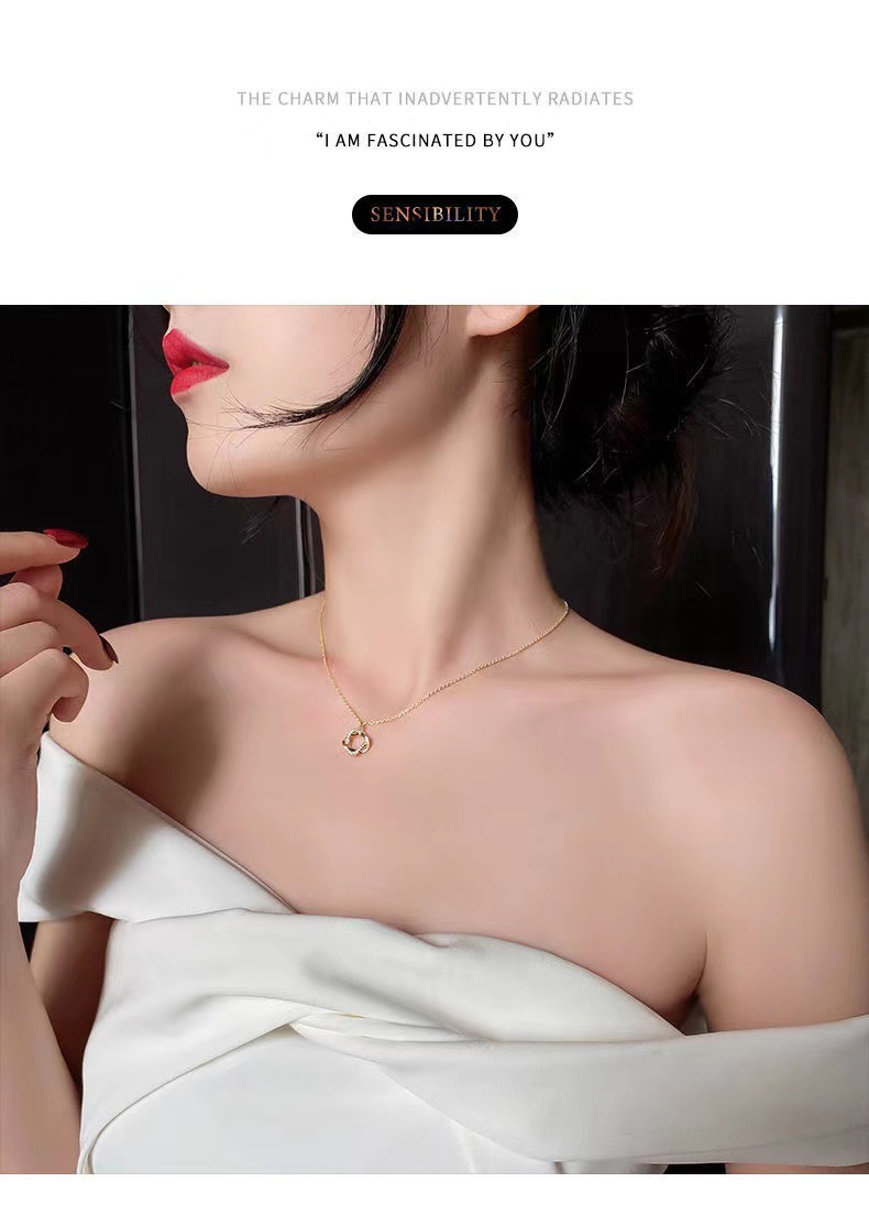 江銘韓国ファッションデザインジルコン幾何学クロスねじれ花びらネックレス女性ネット赤気質ペンダント個性潮