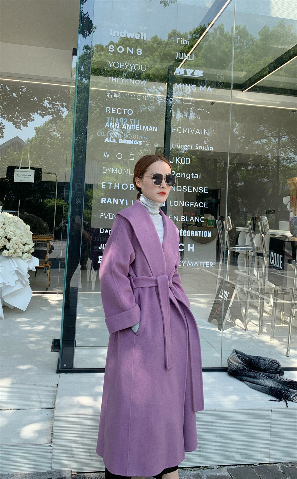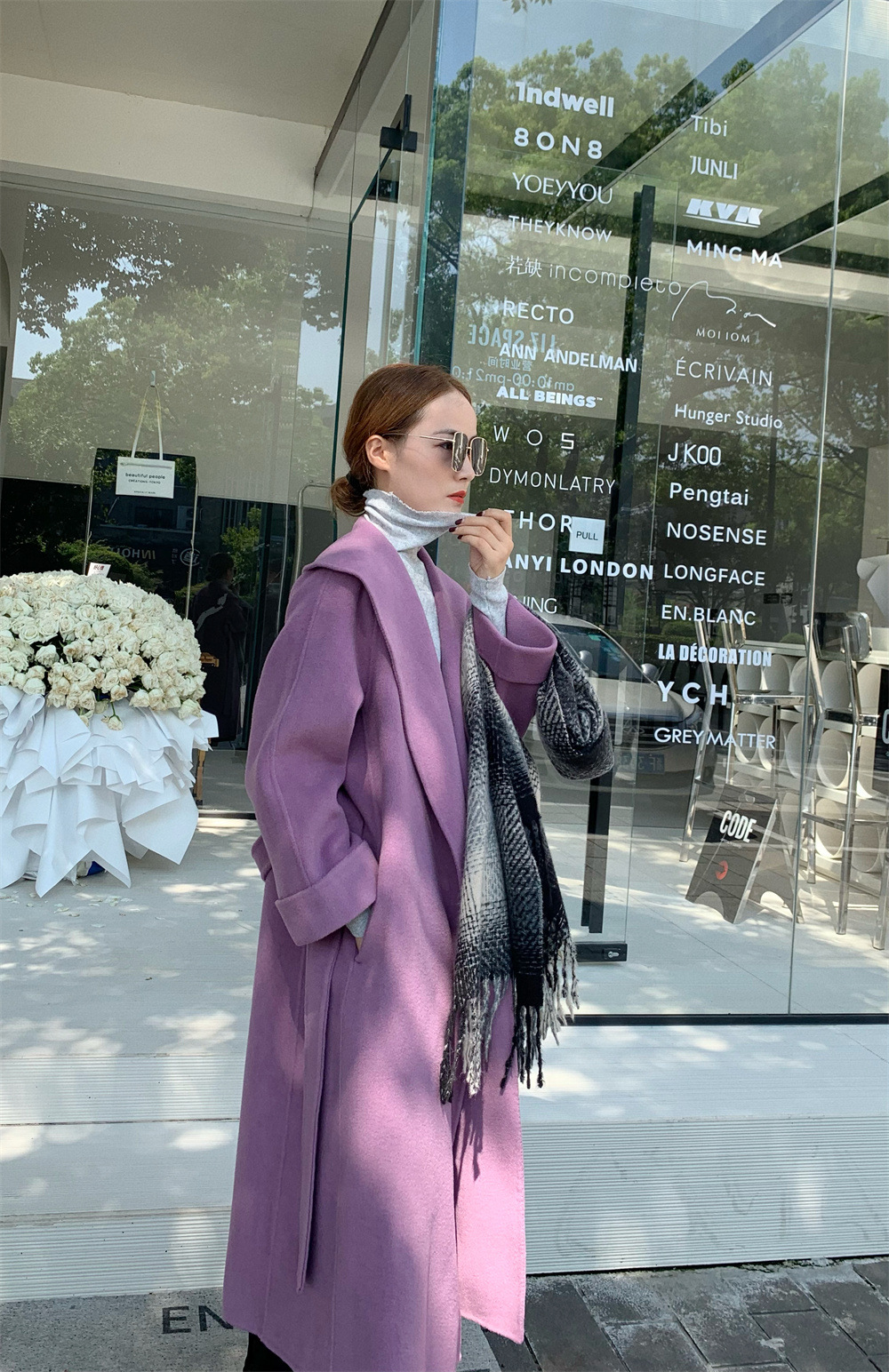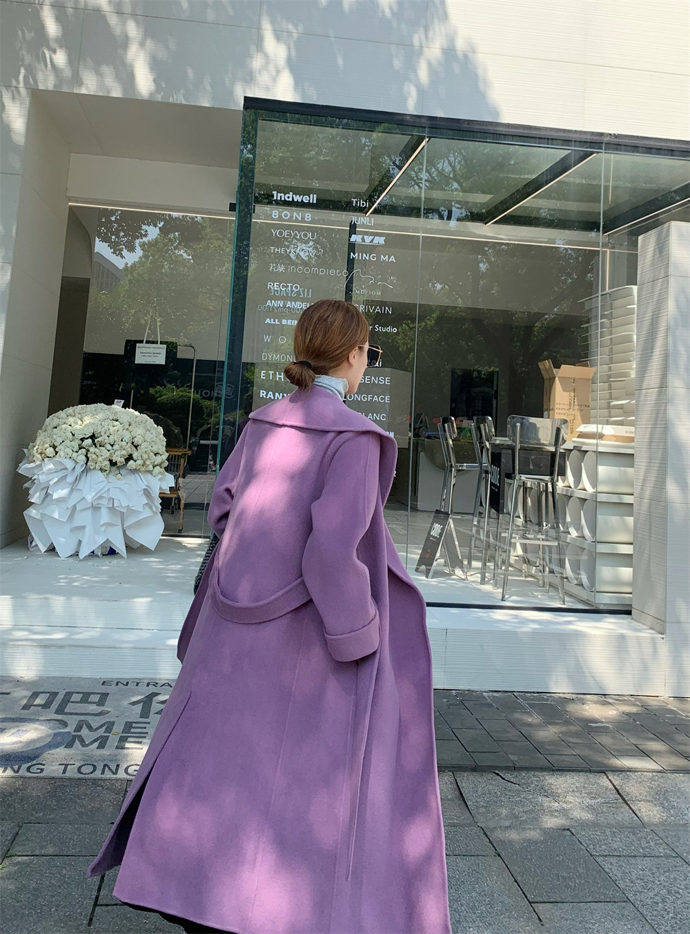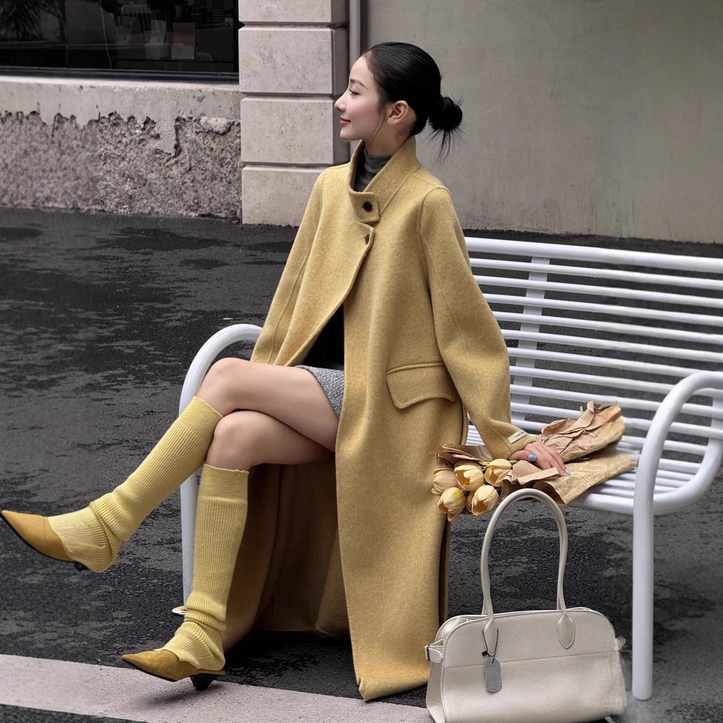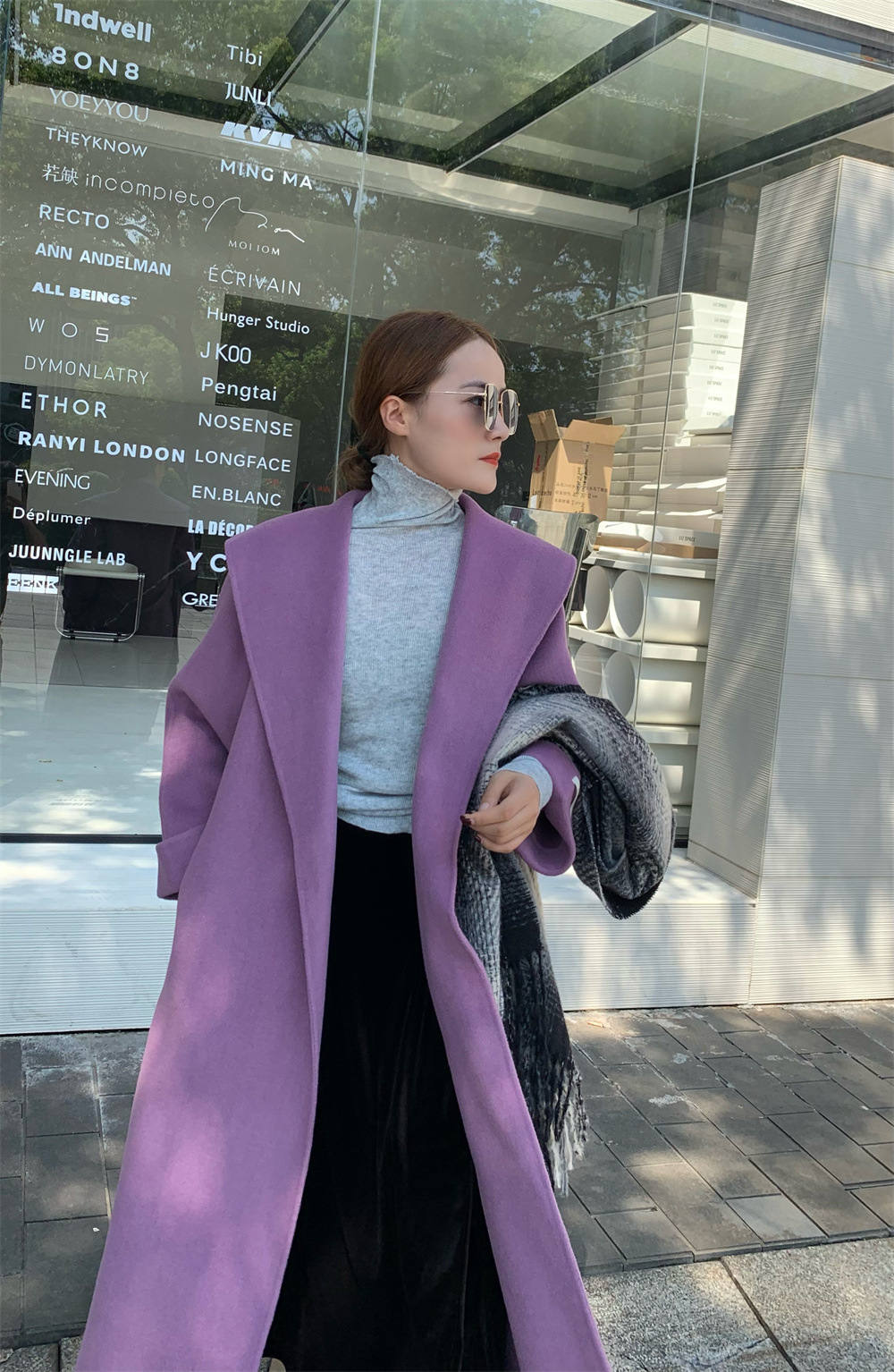 东大门立领单排扣双面羊毛大衣 中长款简约加厚腰带羊毛双面外套