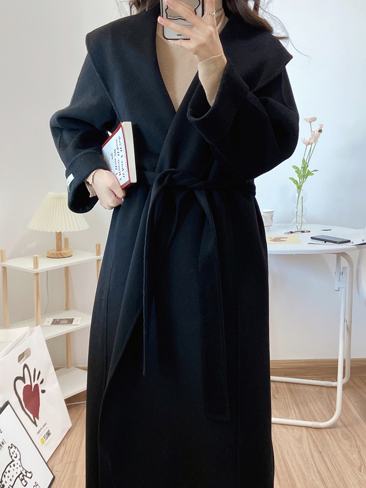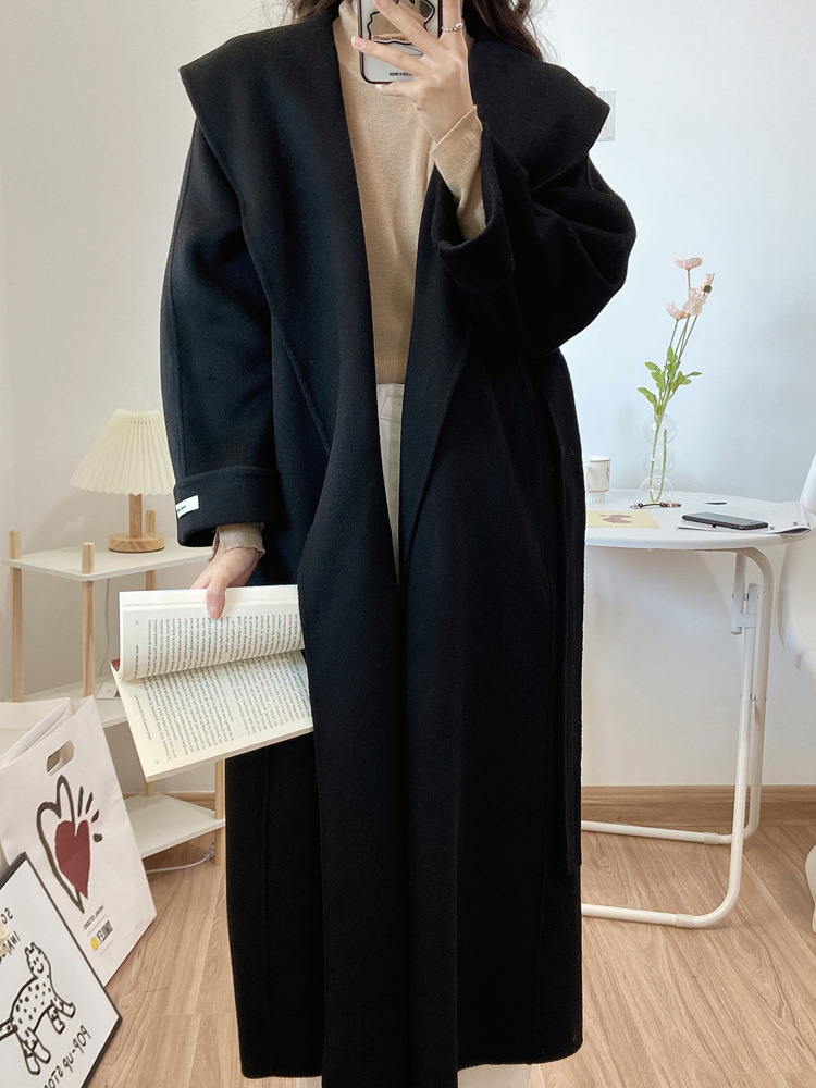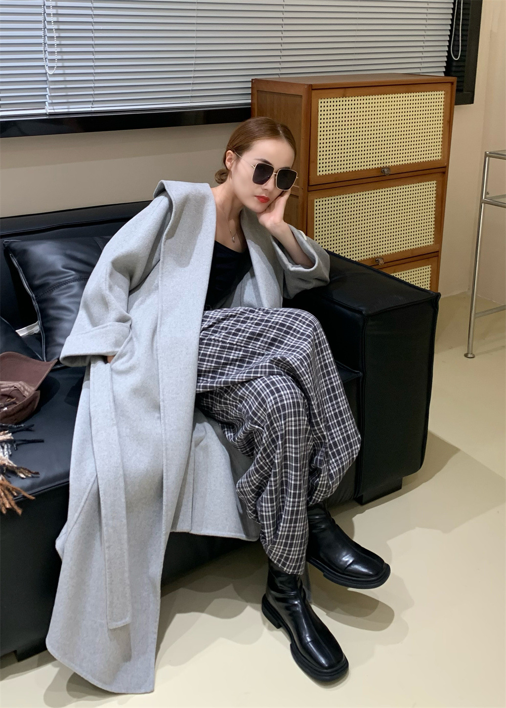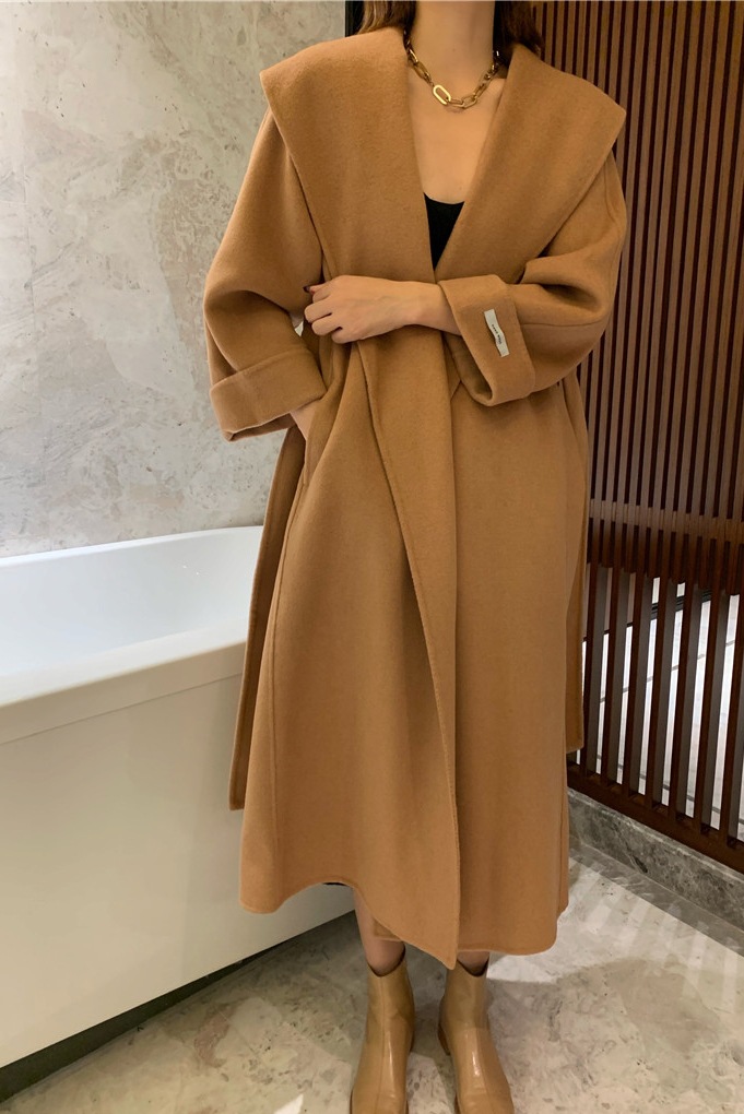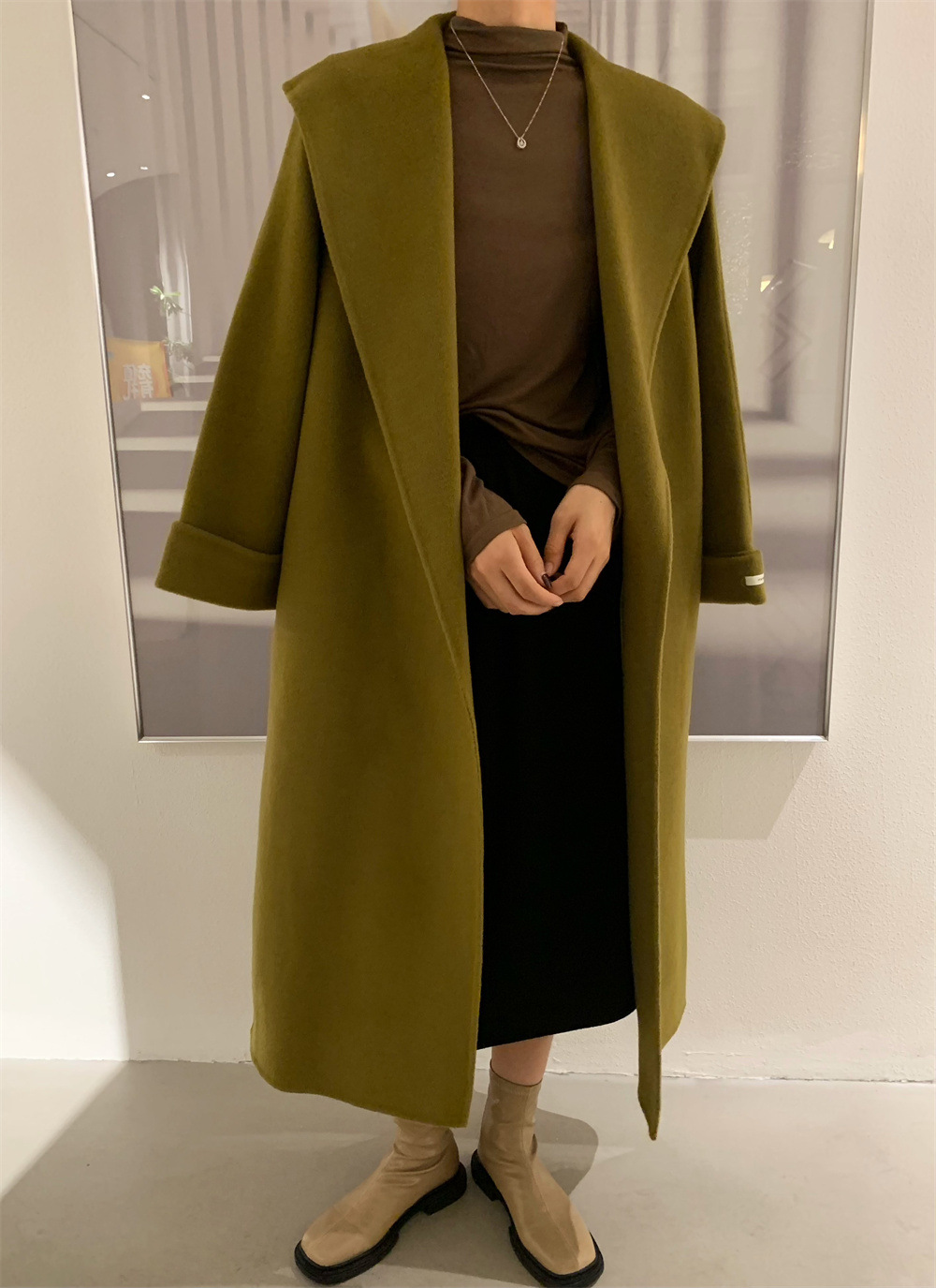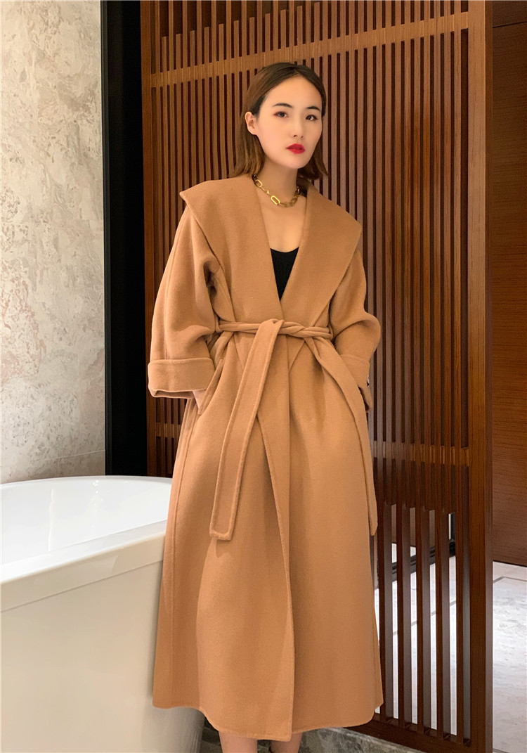 バスローブスタイルの両面ウールコートシチリアのストラップがゆったりしています。
