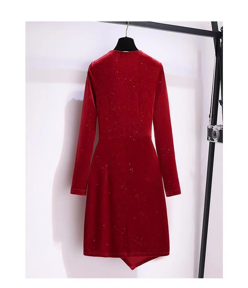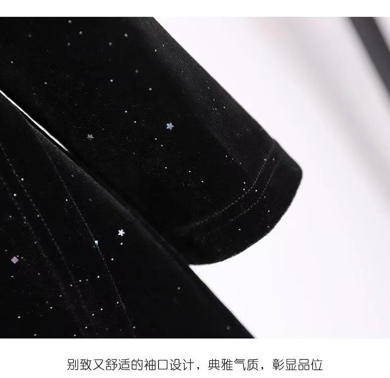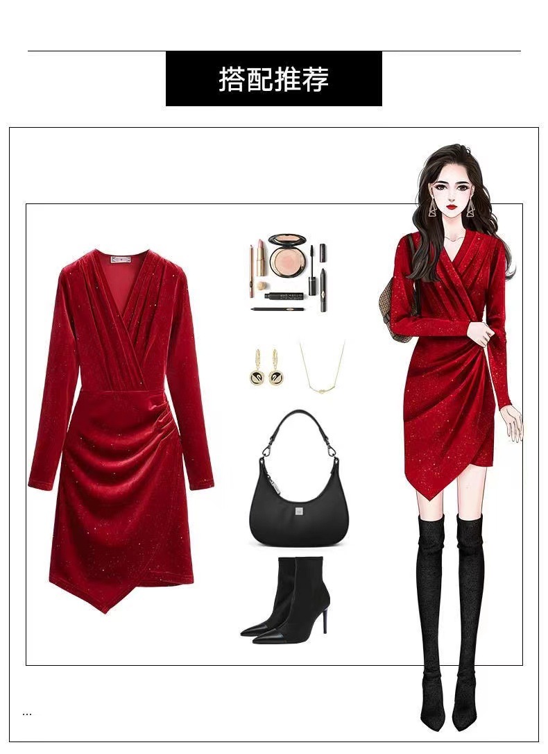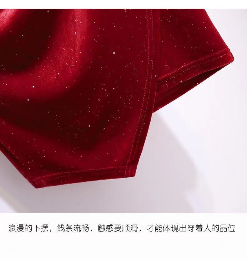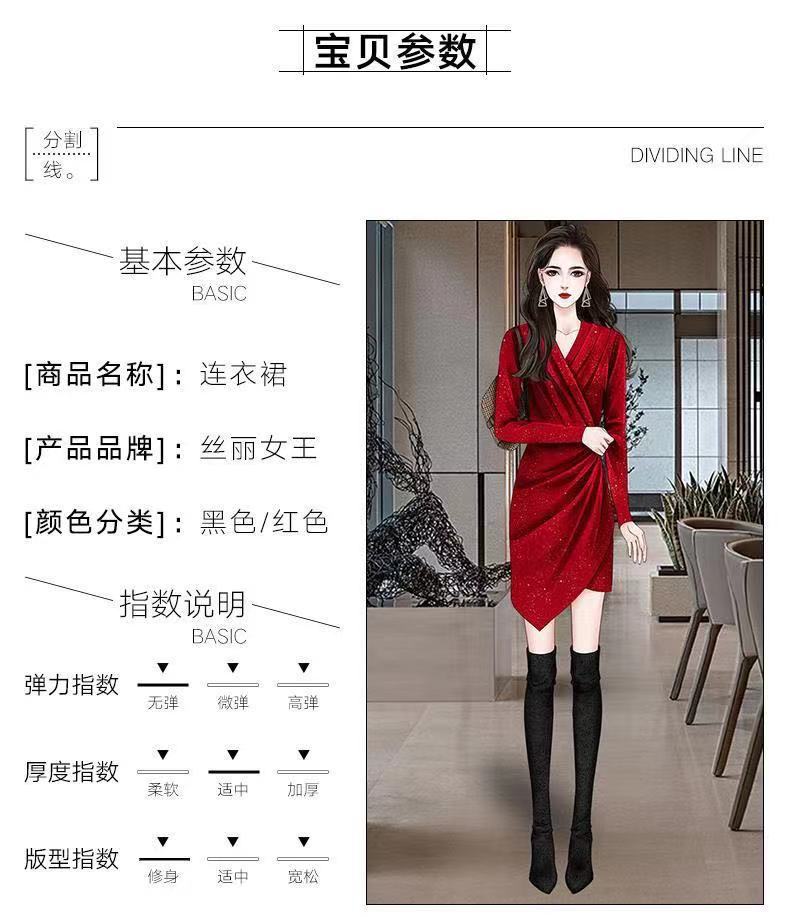 クリスマスの赤い年会の姉妹のベルベットのワンピース秋冬の新型の気質は気をつけてデザイン感のドレスの中でスカートの女性を設計します。