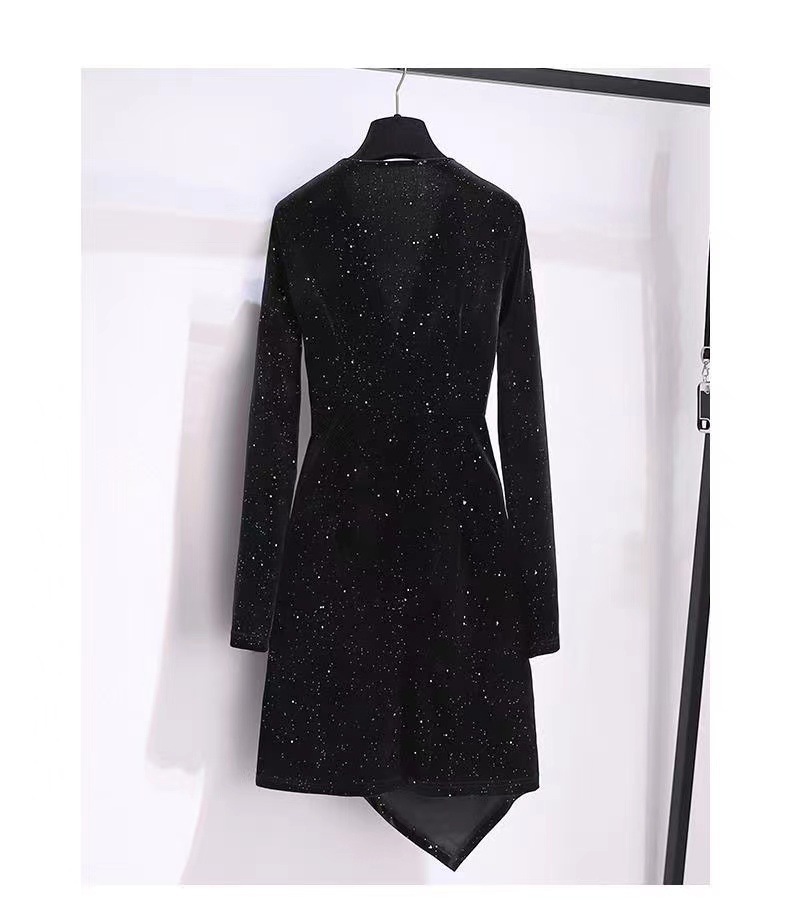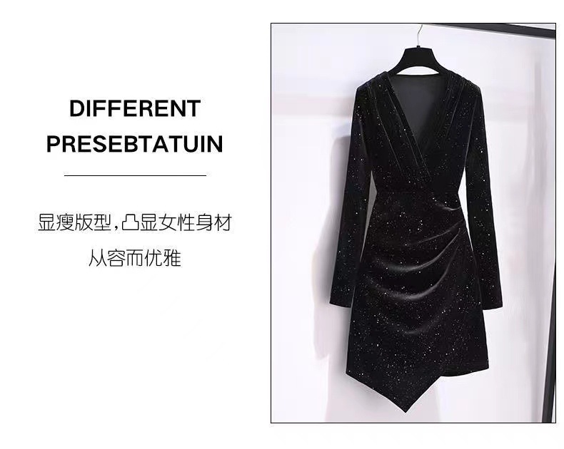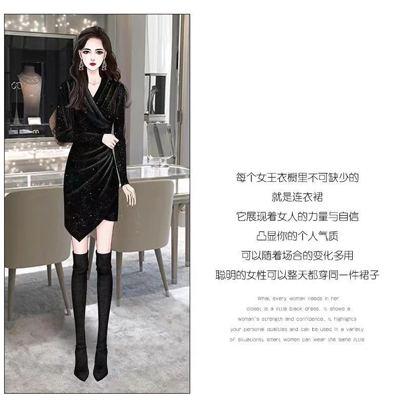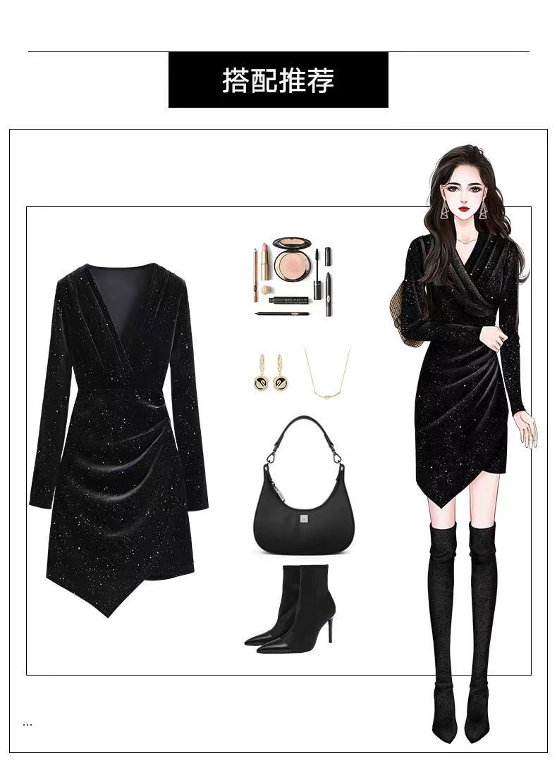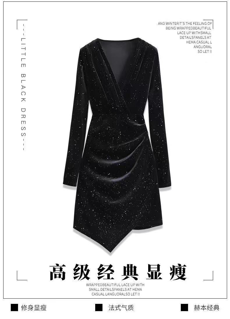おしゃれな春ワンピース レディース 2025年新作 韓国風 Vネック 小柄さん向け スリムで上品なイレギュラーな黒ワンピース トレンド