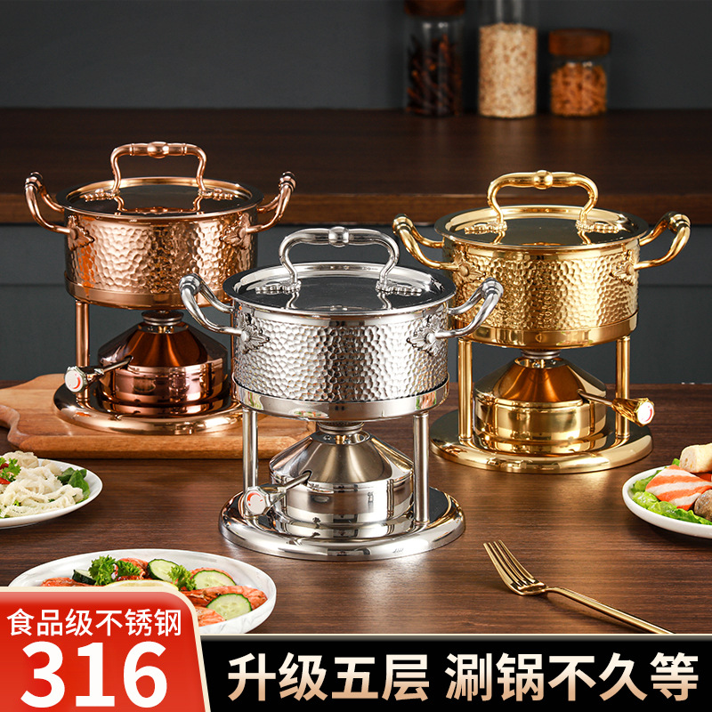扬通316不锈钢小火锅一人一锅充气式火锅锅瓦斯炉商用单人小火锅