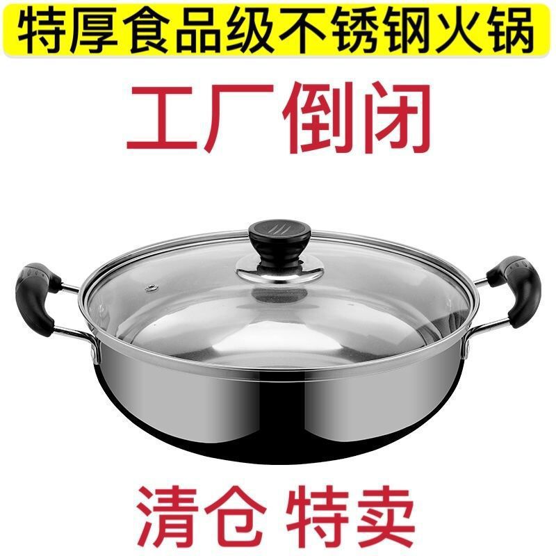 批发加厚不锈钢火锅家用厨房双耳汤锅大容量带盖清汤锅电磁炉通用