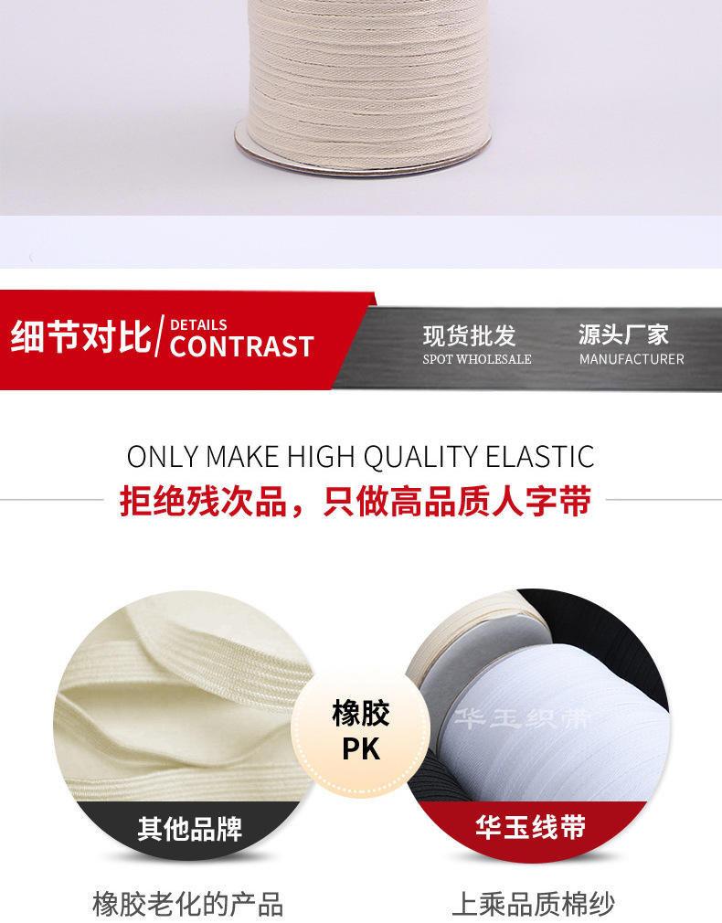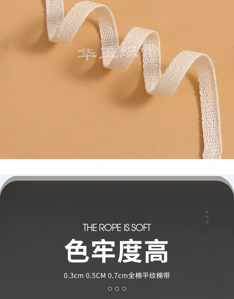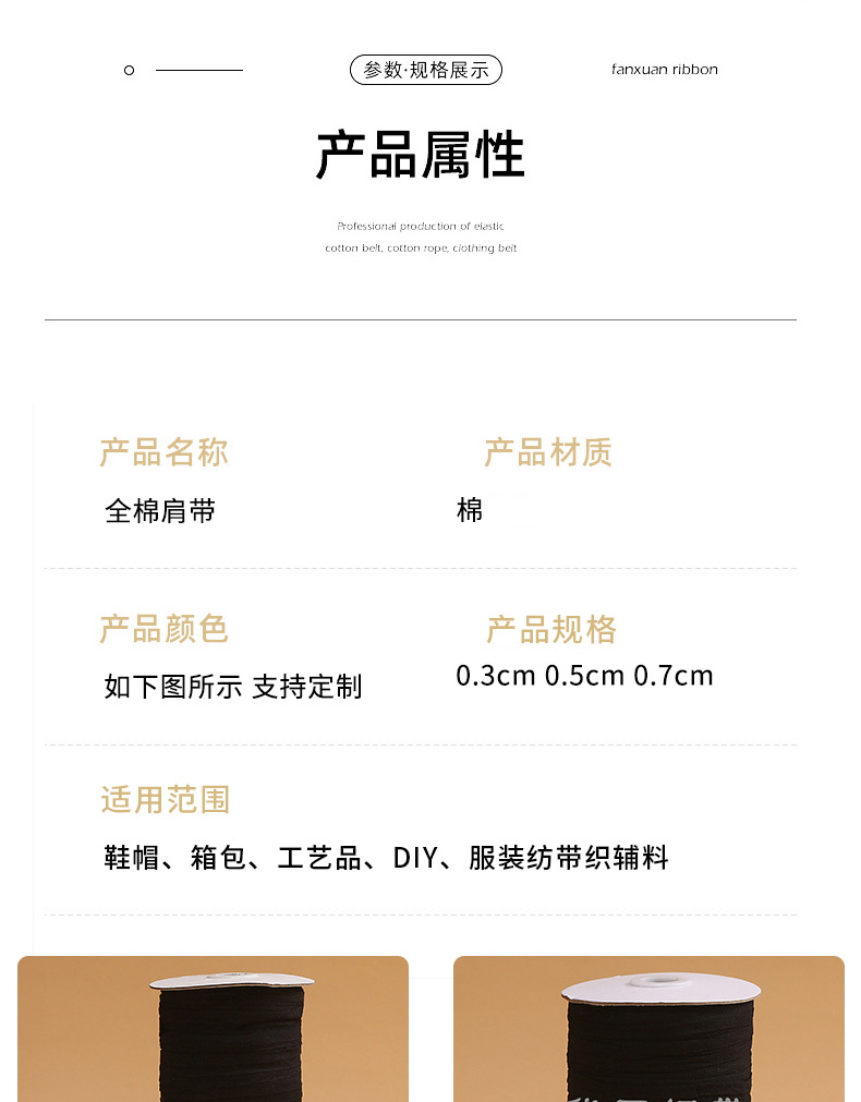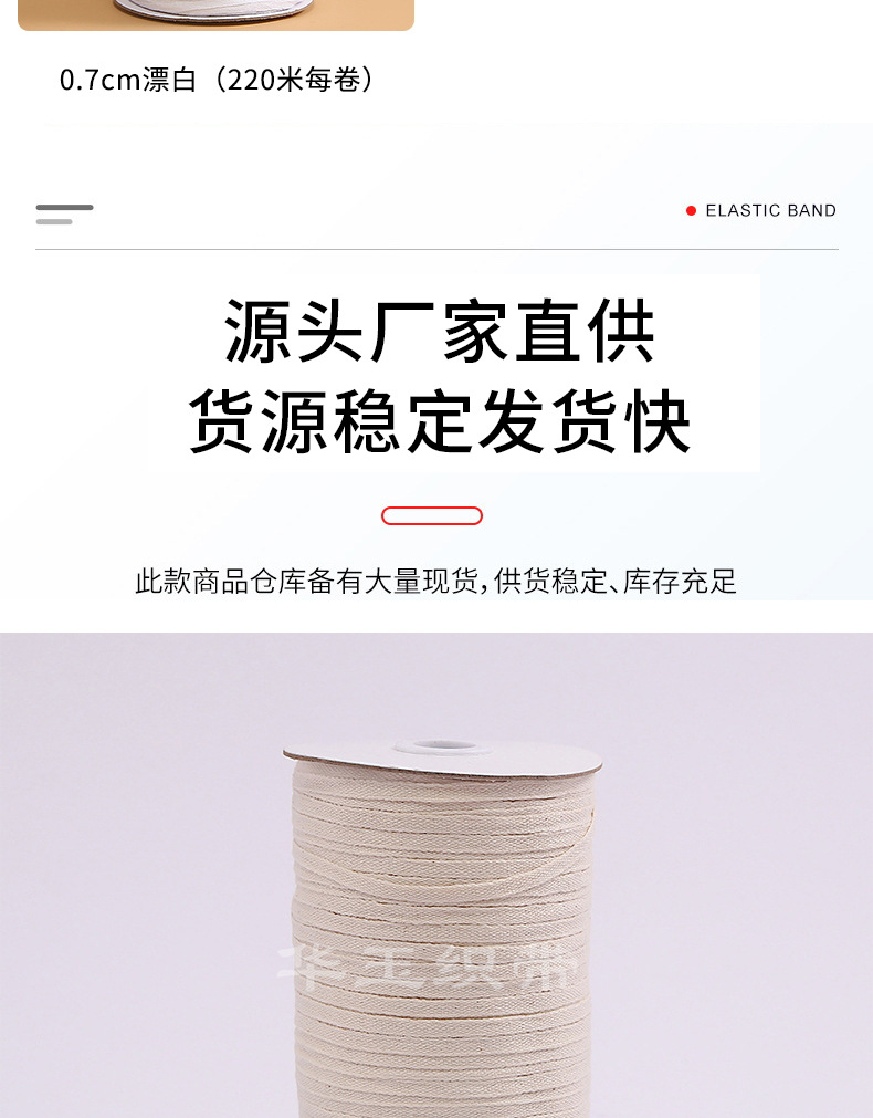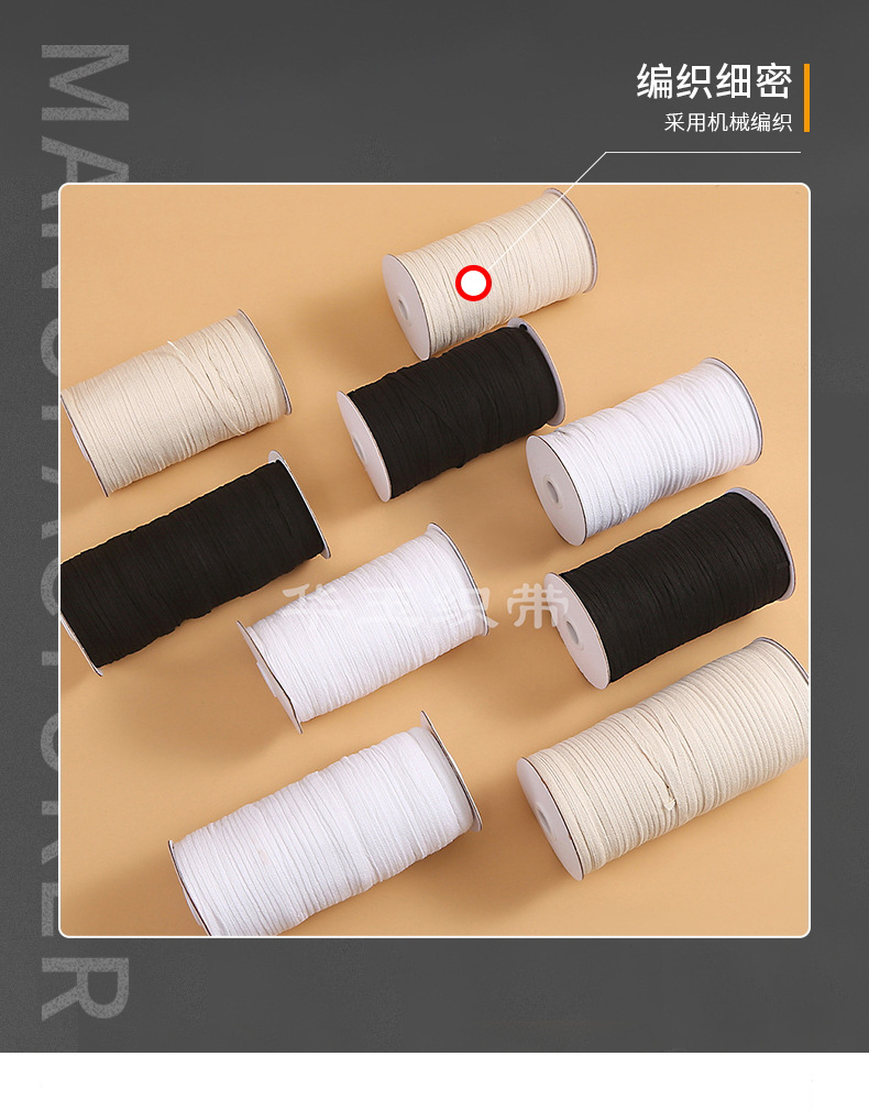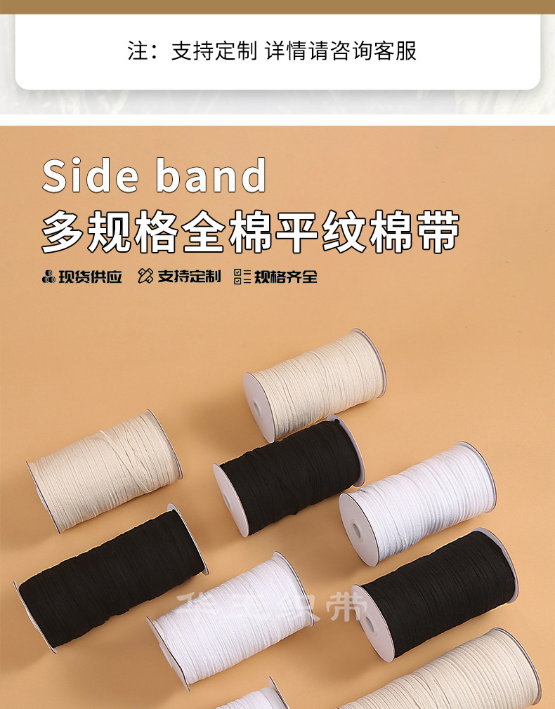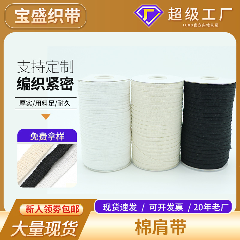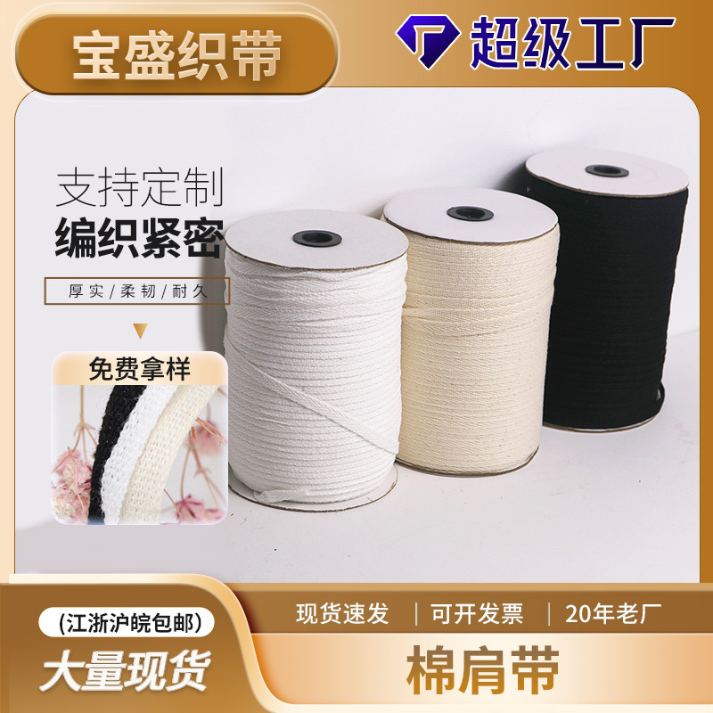 現物は3ミリ5ミリ7ミリ綿肩帯漂白本白黒筒装平織り帯を供給している