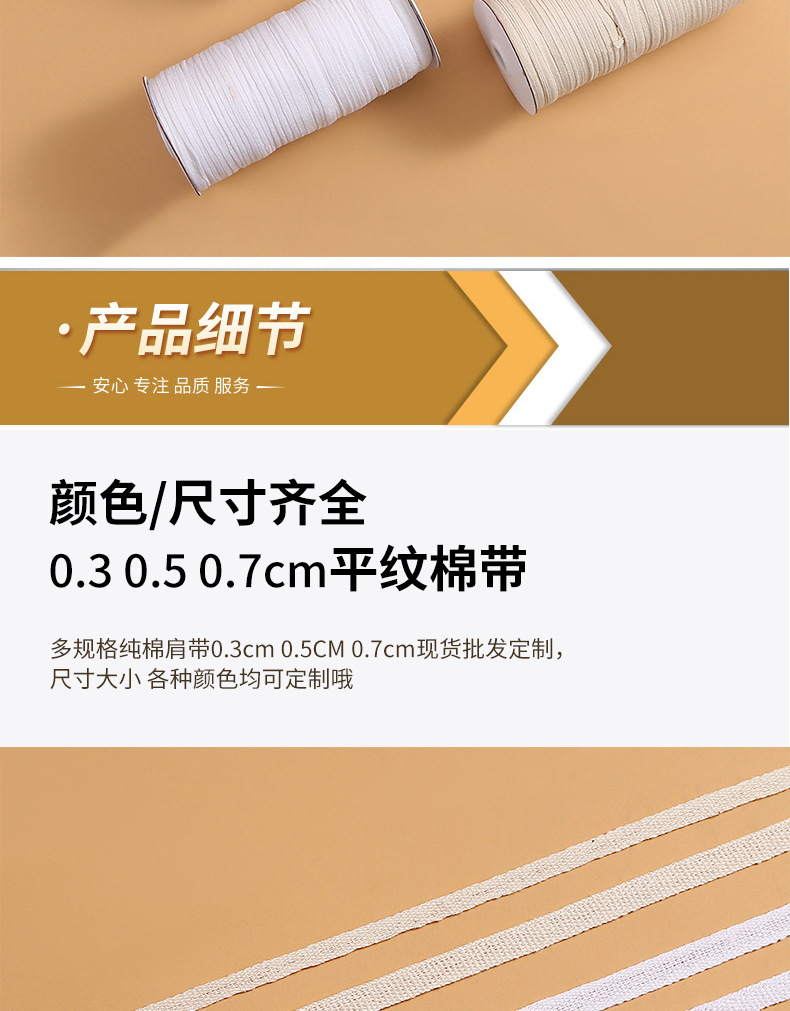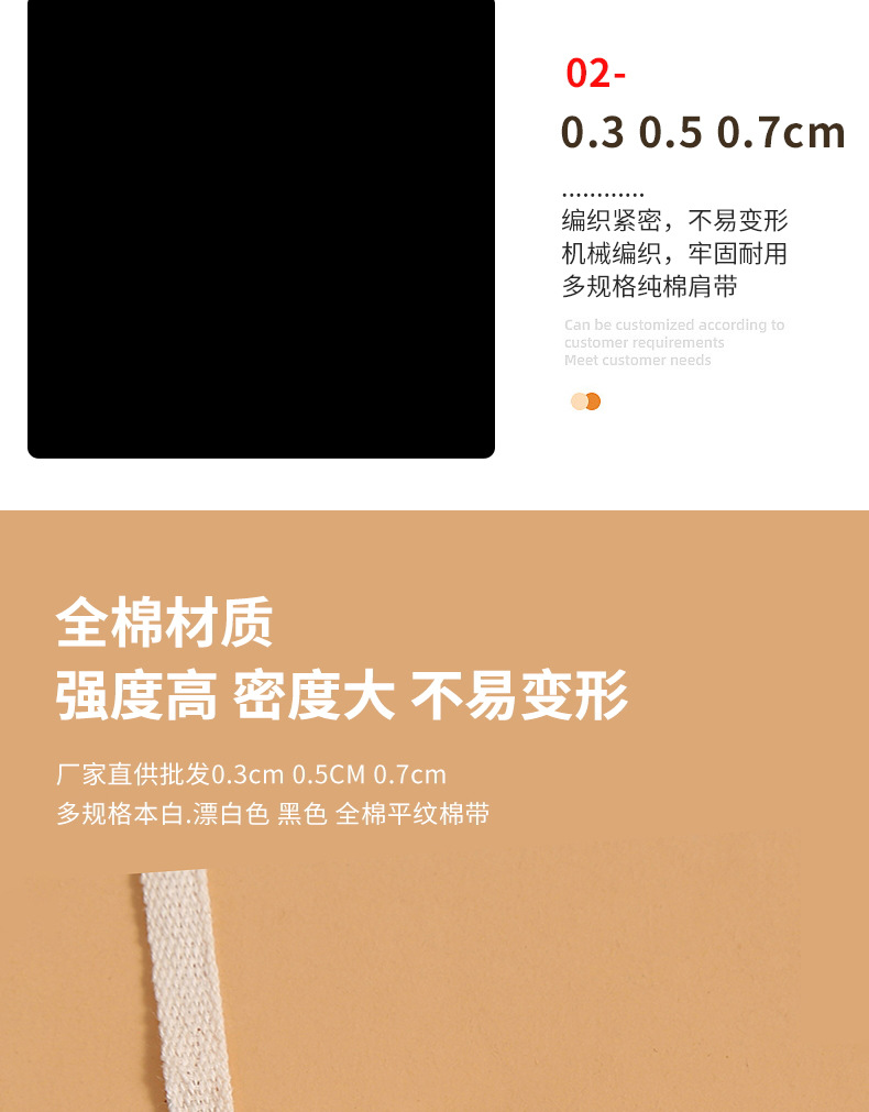 多規格純綿肩帯0.3cm 0.5cm 0.7cm本白.漂白色黒色綿平織り綿帯