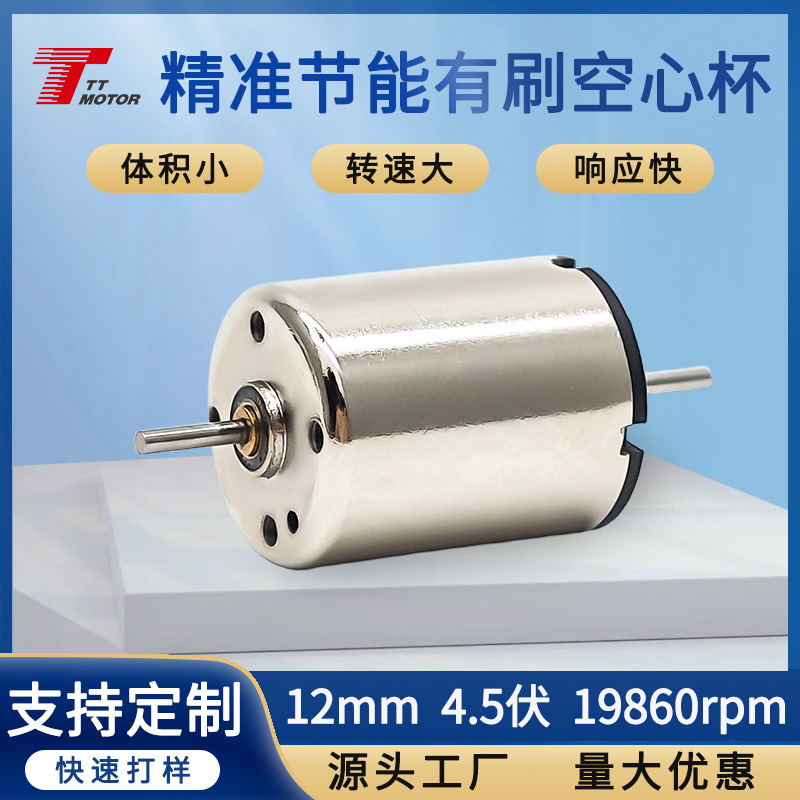 1215 ブラシ付きコアレスブラシモーター 12mm 低ノイズ エンコーダー付き可能 12V コアレスモーター
