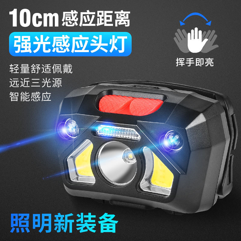 厂家现货充电led头灯强光长续航手电筒户外防水头戴式感应钓鱼