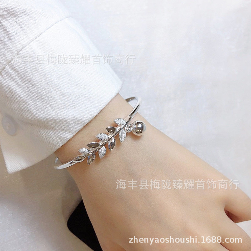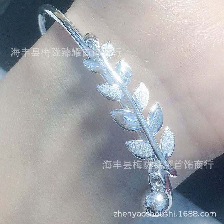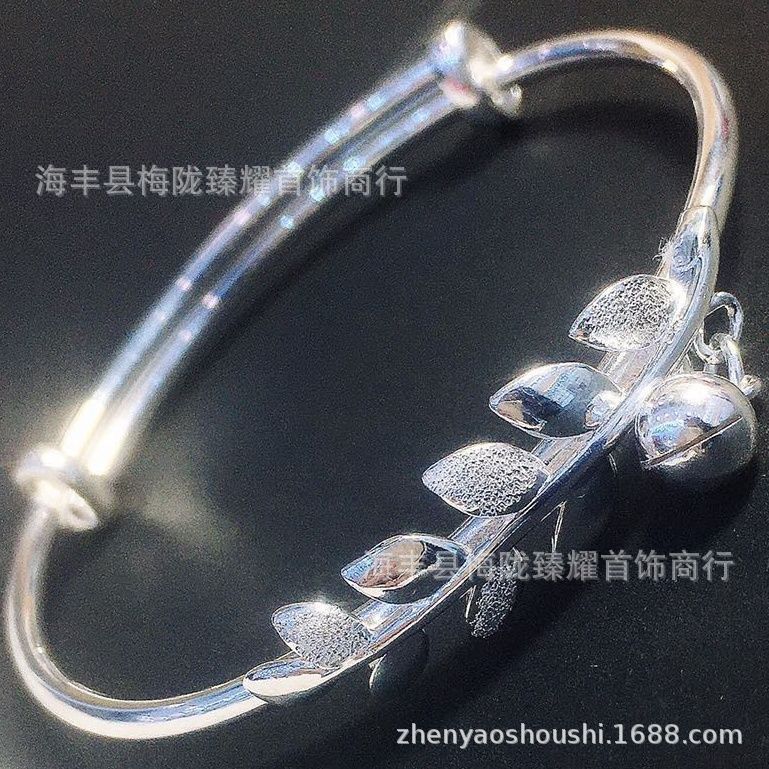 江銘のつや消しの一葉の生財のブレスレットの女性は中実の金を引いて銀の腕輪の葉の鈴の大人の手環の民族をめっきします。