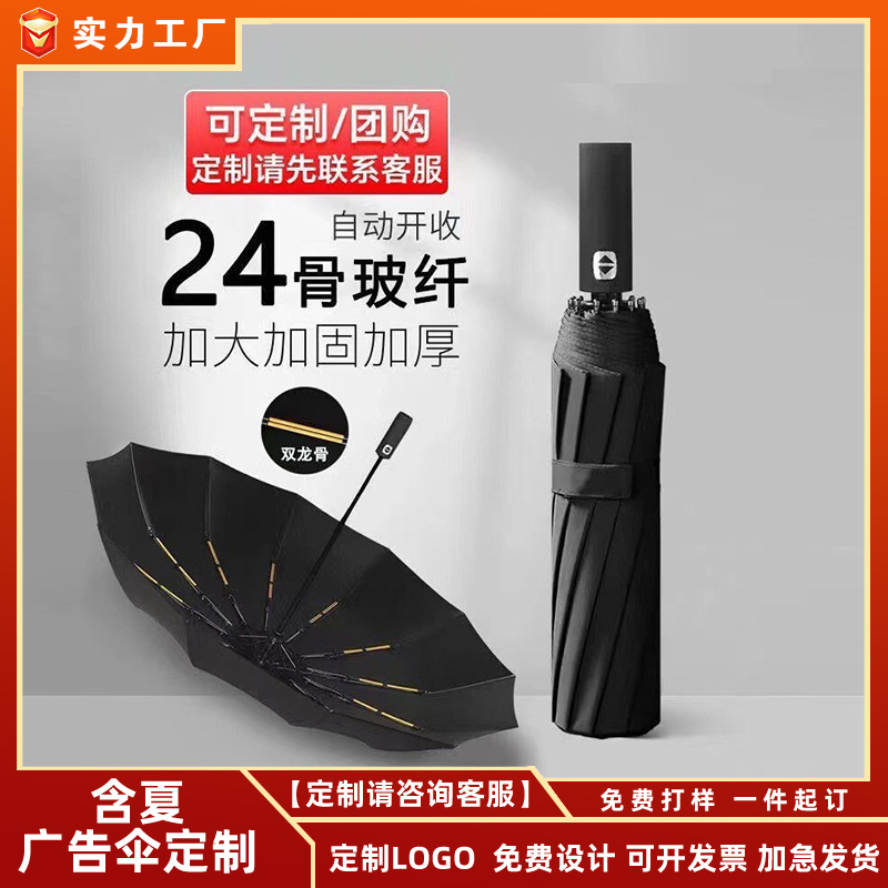 ロゴ入り全自動傘 広告傘 晴雨兼用傘 車載特大 男女兼用 強化耐風日焼け止め