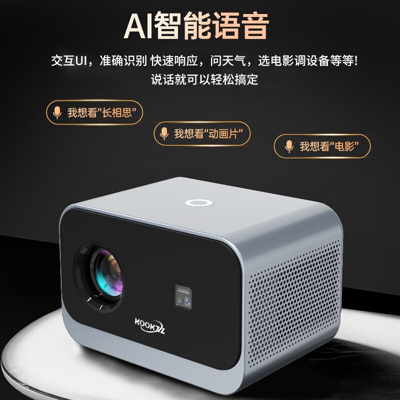 KOOKZZプロジェクターTY08携帯電話タブレットスクリーンhdホームシアター5Gwifi投影AI音声セキュリティ