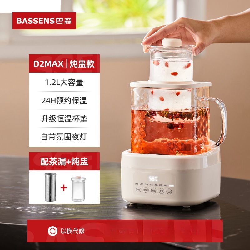 バソン小方煮込みD2第二世代全ガラス養生ポット恒温家庭用多機能オフィス小型茶器