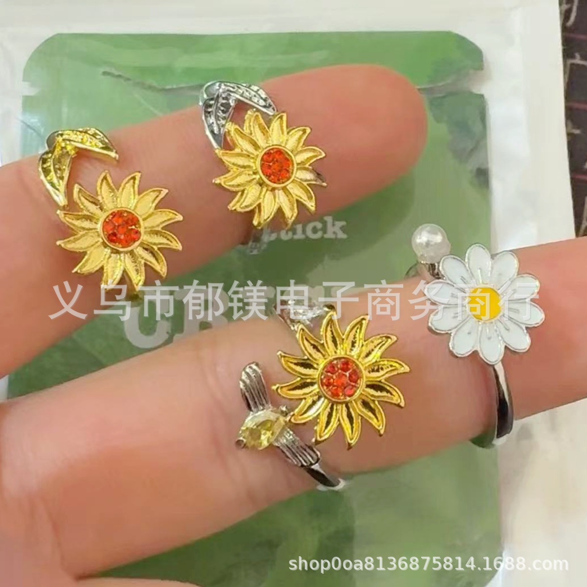 跨境双层可转动圆珠戒指女 焦虑 解压女戒 个性潮手饰厂家批发