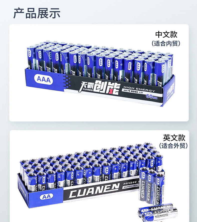 ケンスター5号7号アルカリ乾電池、外貿カスタム5号AAカーボン電池、玩具用AAA電池、越境卸売