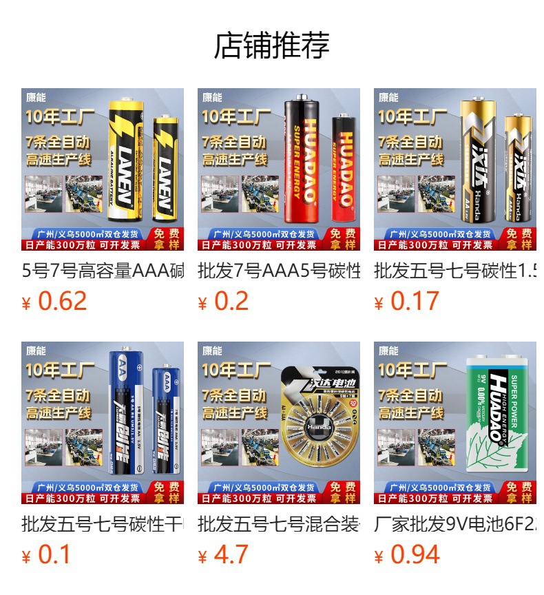 華太5号7号炭素性乾電池5号7号普通玩具泡機走江湖電池卸売り