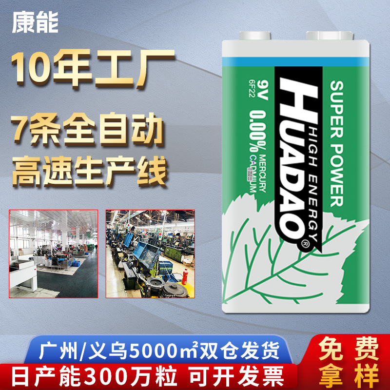 メーカー卸売り9v電池6f22炭素性角形万能時計マイク煙警報器炭素電池
