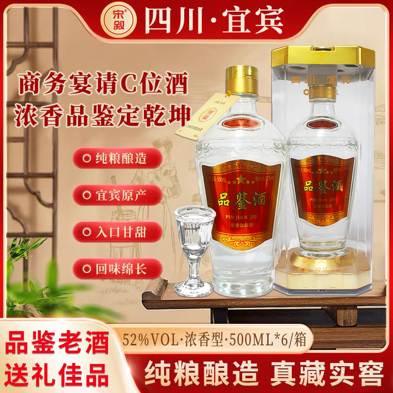 四川宜宾白酒五粮浓香型品鉴酒52度纯粮食酿造送礼长辈批发礼盒装