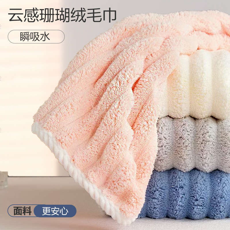 高密度コーラルベルベットの切りっぱなしタオル、洗顔用タオル、ギフト、家庭用、色落ちなし、毛抜けなし、肌に優しく柔らかい