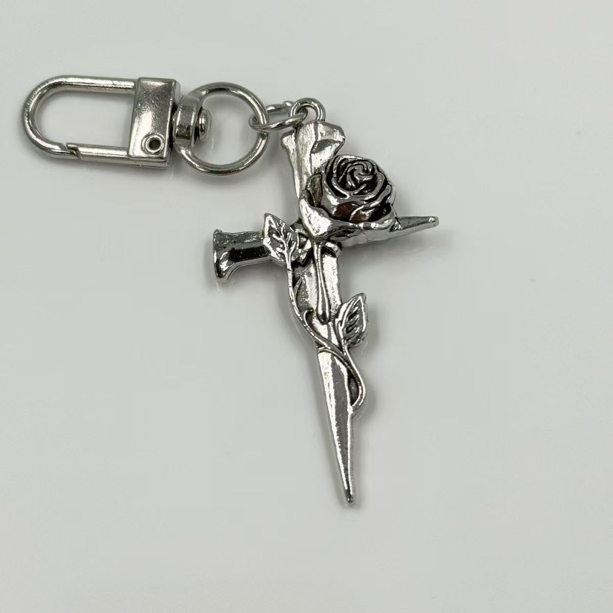复古荆棘玫瑰十字架钥匙扣时尚日韩风小众金属挂饰背包拉链扣挂件