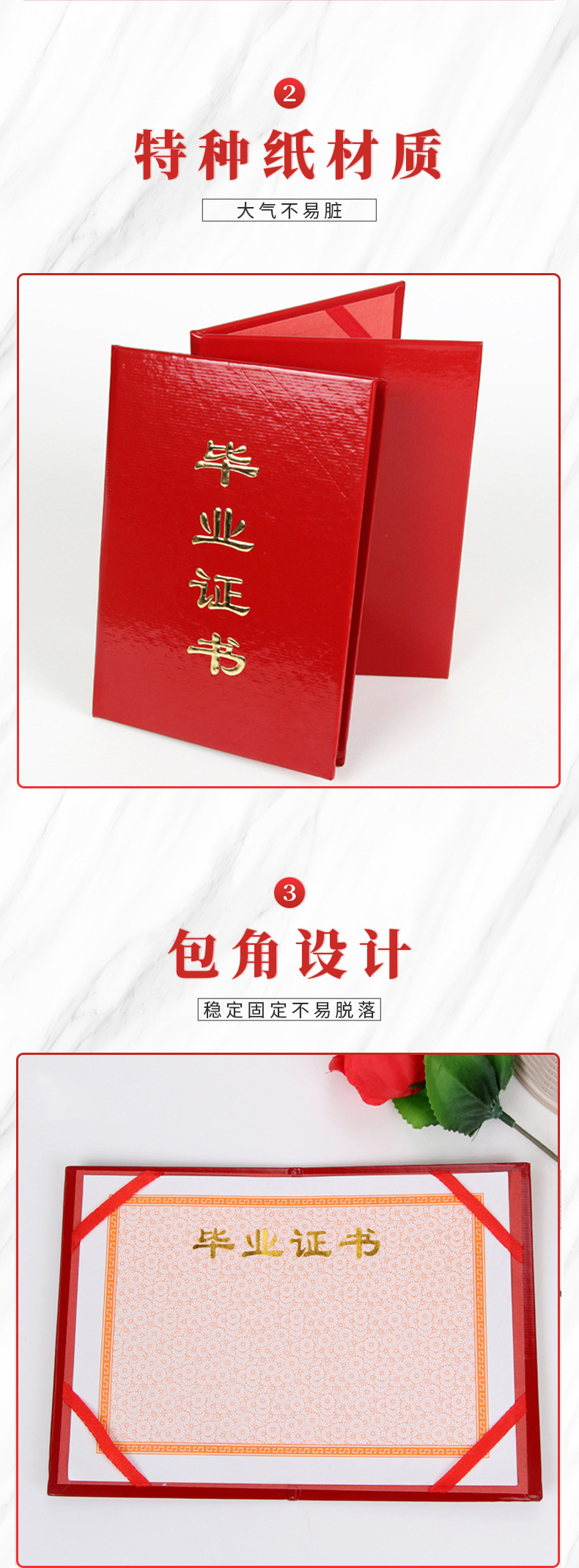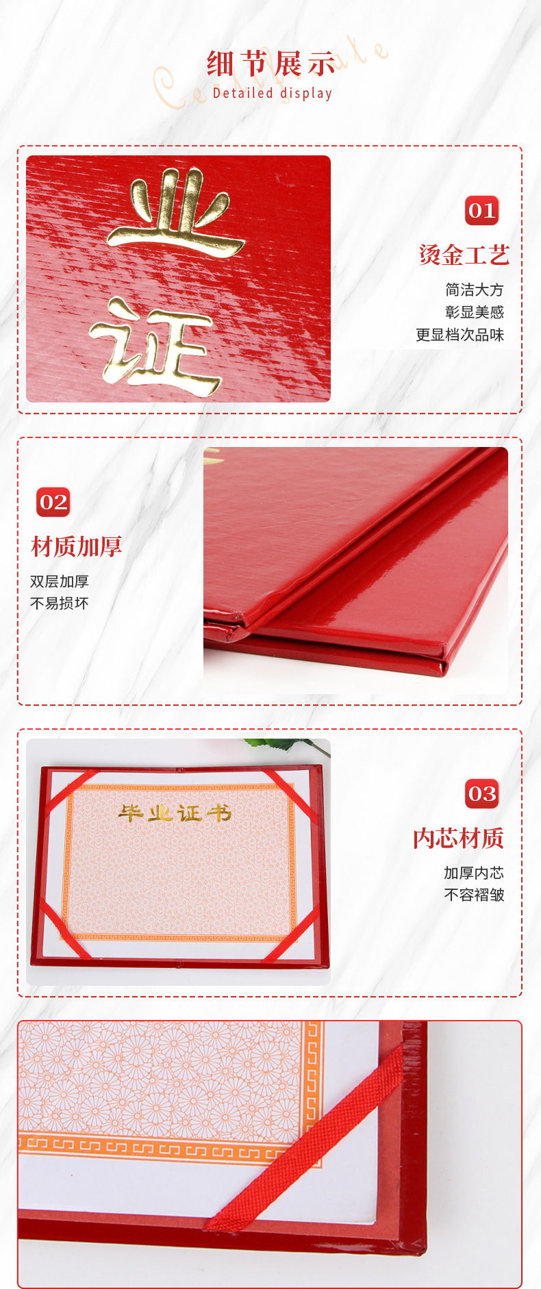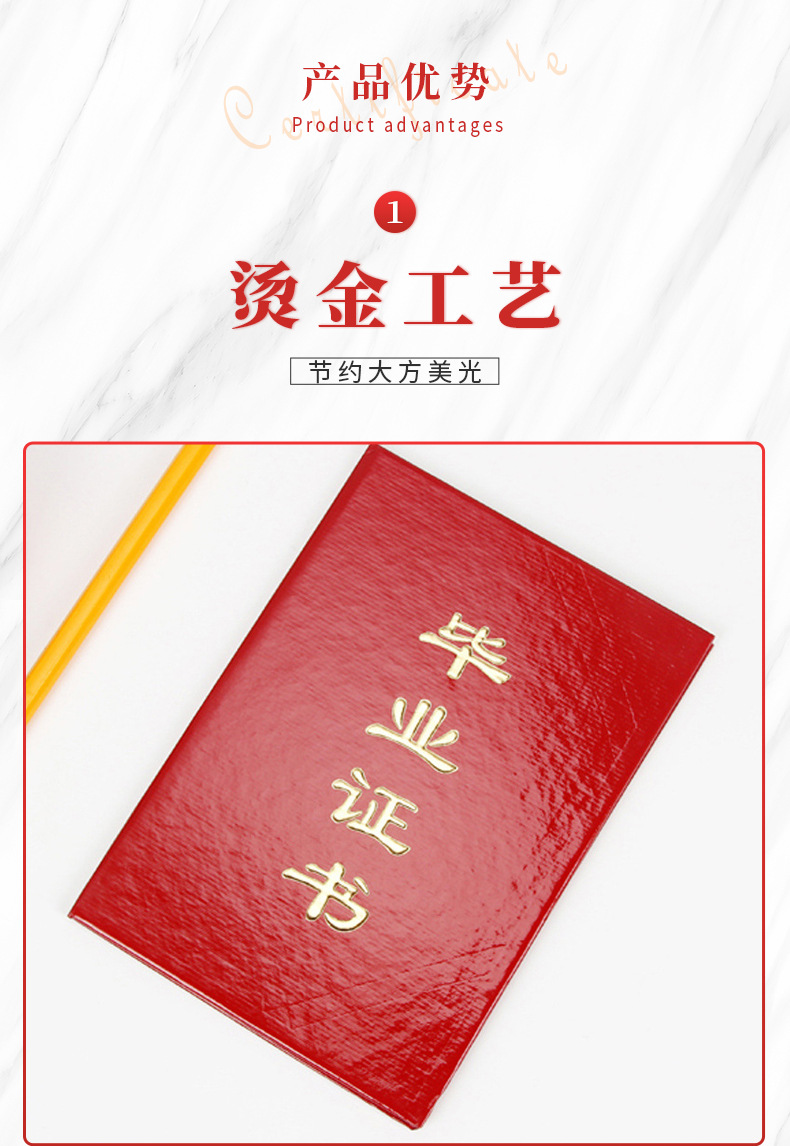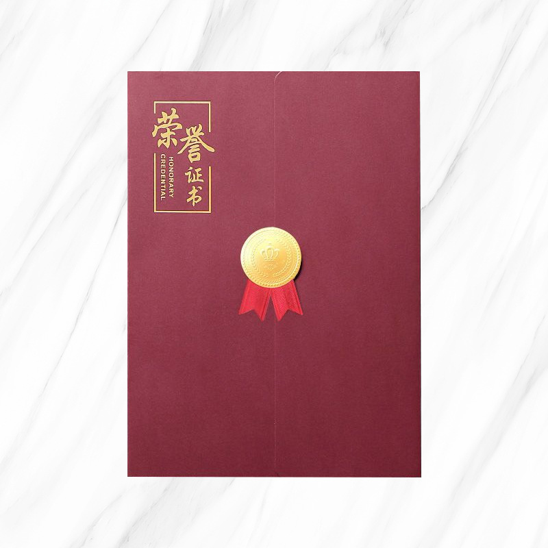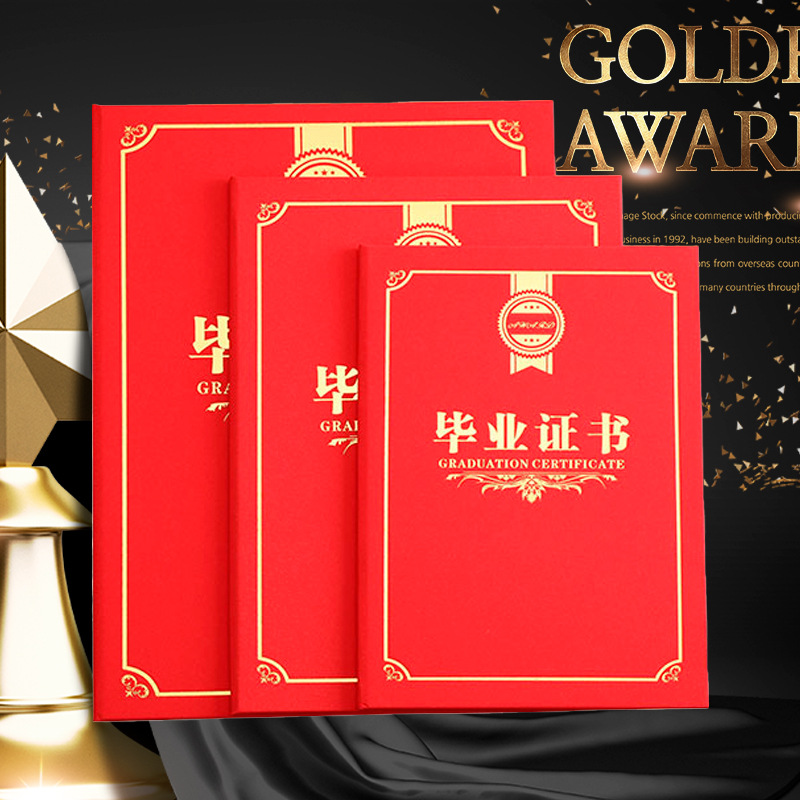 25k赤色箔押し卒業証書カバー25k表彰学生研修証書表紙ロゴ印刷