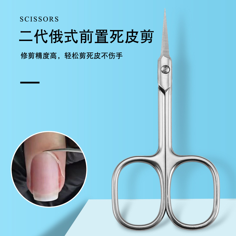 俄式死皮剪子不锈钢超薄尖头美甲倒刺去死皮修眉剪刀跨境美甲工具
