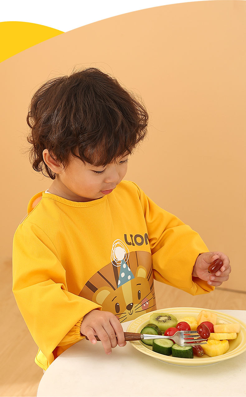 子供用カバー防水長袖エプロン汚れに強い飲食幼稚園の食事をしています。