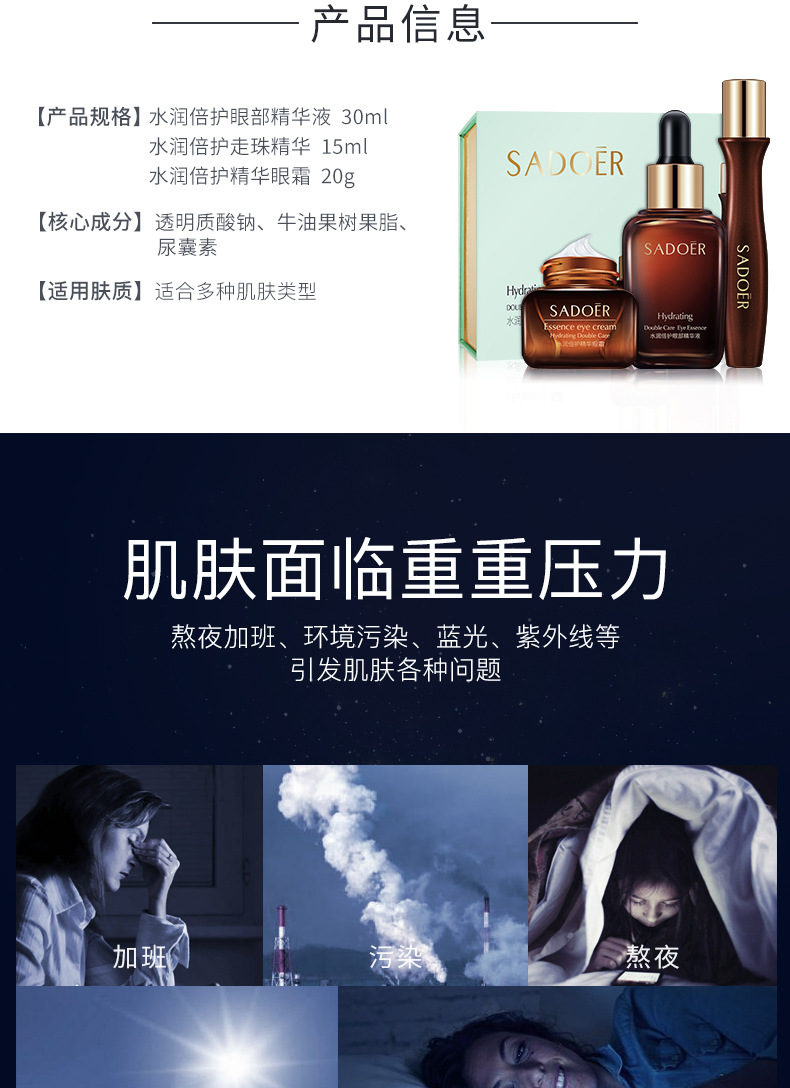 Shangduo ハイドレーティングケアエッセンスアイセット保湿と水分補給アイケアセットスキンケア製品工場卸売