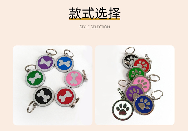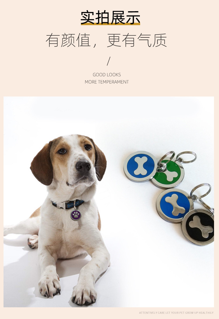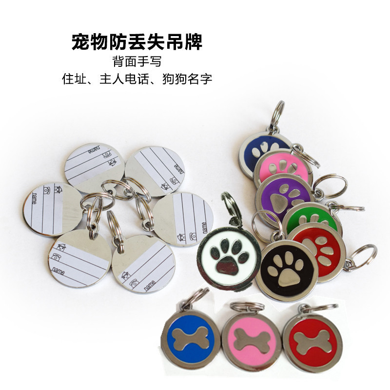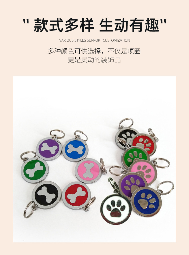 メーカー現物diy金属ペット吊り看板亜鉛合金身分札フラッシュ粉足跡彫刻犬札ストラップ