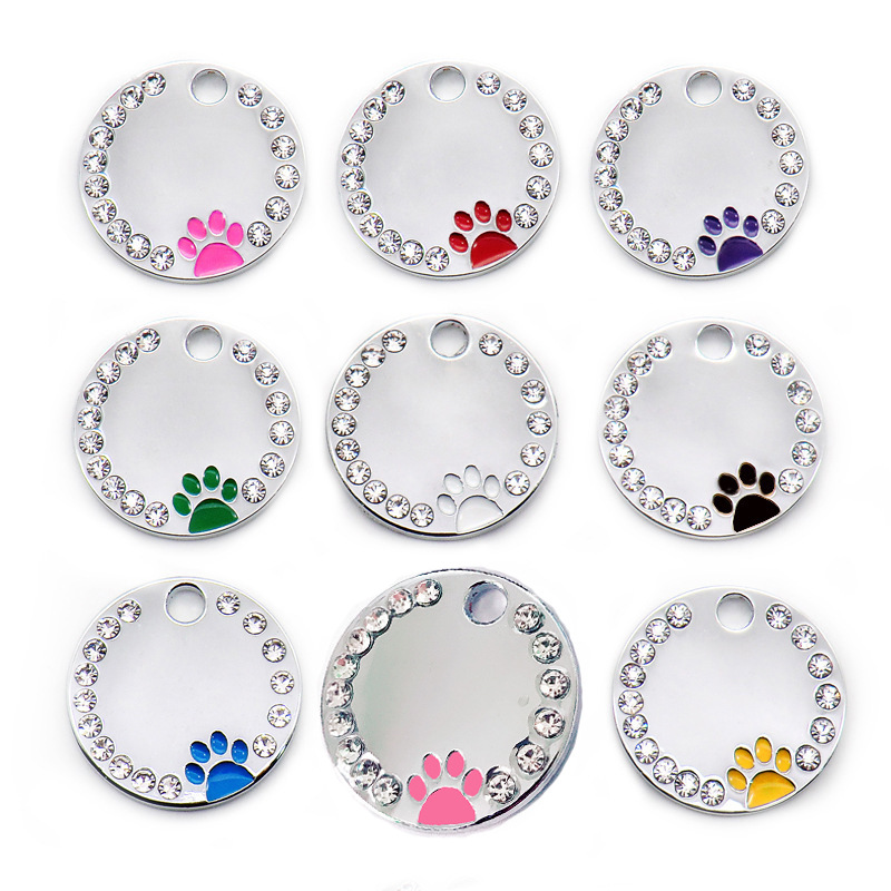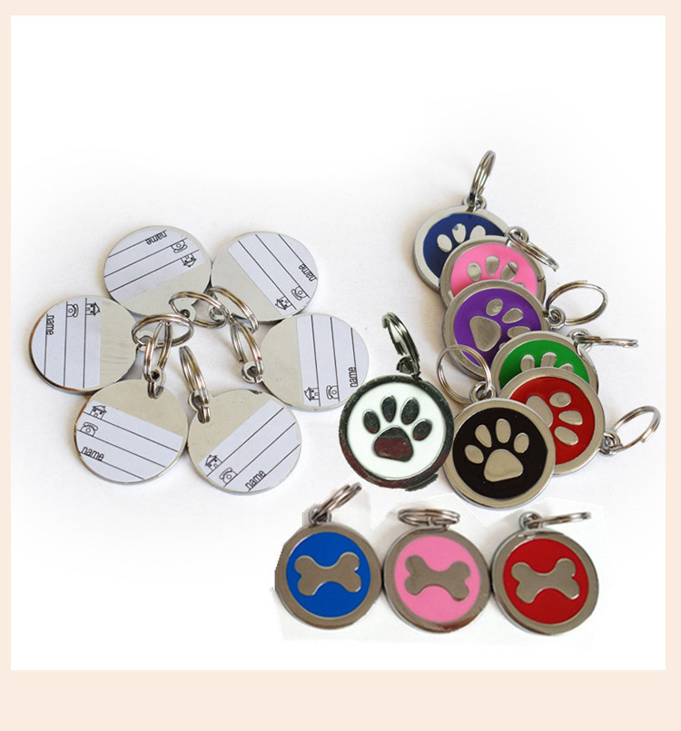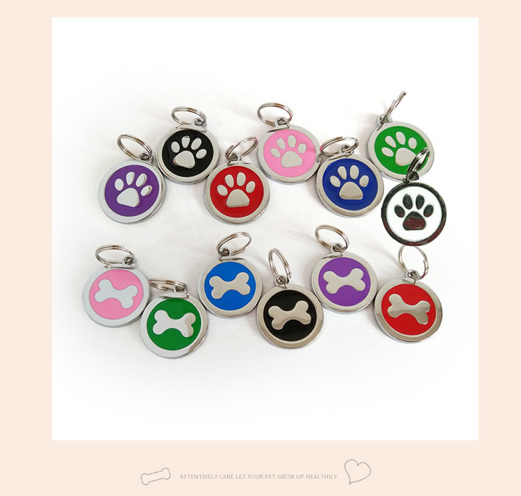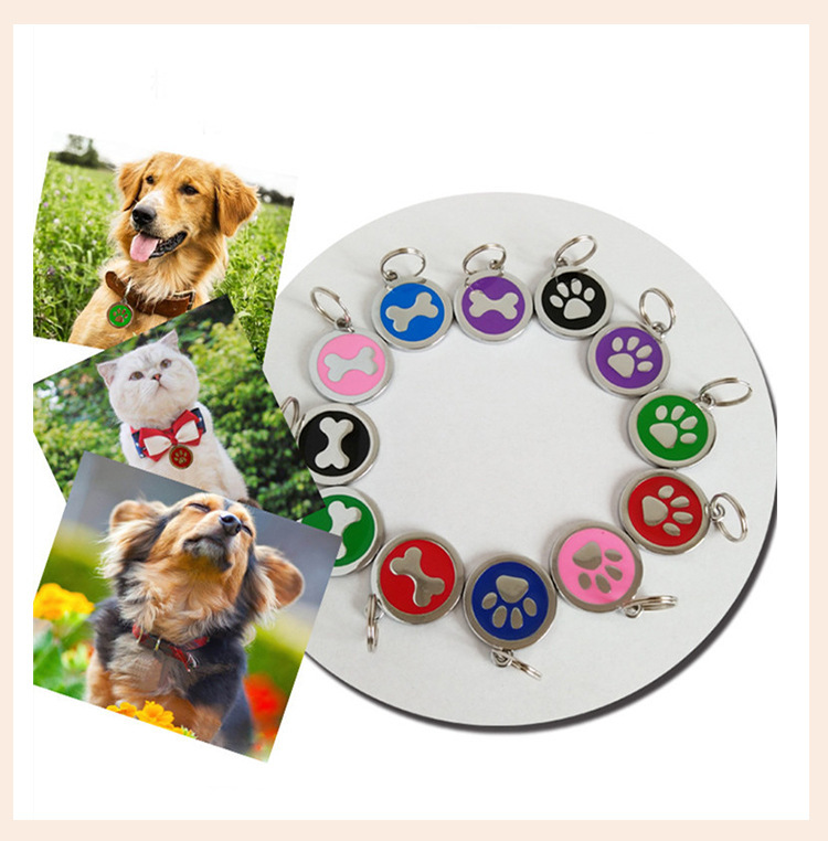 新しいペット用ネームタグ、丸型の足跡と骨のデザイン、猫用パターン、首輪タグ、迷子防止ID、刻印可能