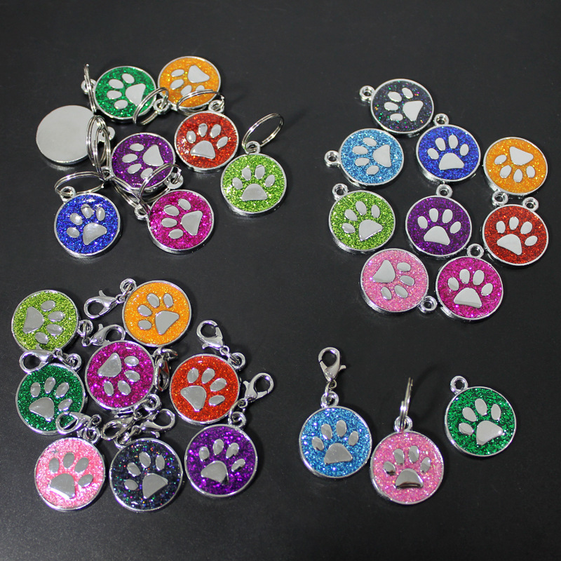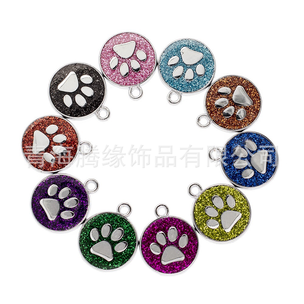 19 ミリメートルグリッター犬の足跡ペンダント亜鉛合金ペット ID タグ小さなアクセサリーカラフルなグリッターオイル滴落下防止ペンダント
