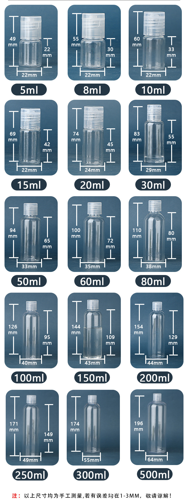 スポット5-100ミリリットルフリップボトルpet透明プラスチック分注ボトル液体ローションボトル蝶蓋分注ボトル