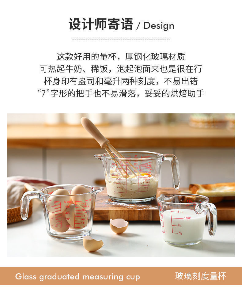 牛奶杯家用带刻度耐热玻璃杯子微波炉加热儿童早餐杯烘焙量杯子