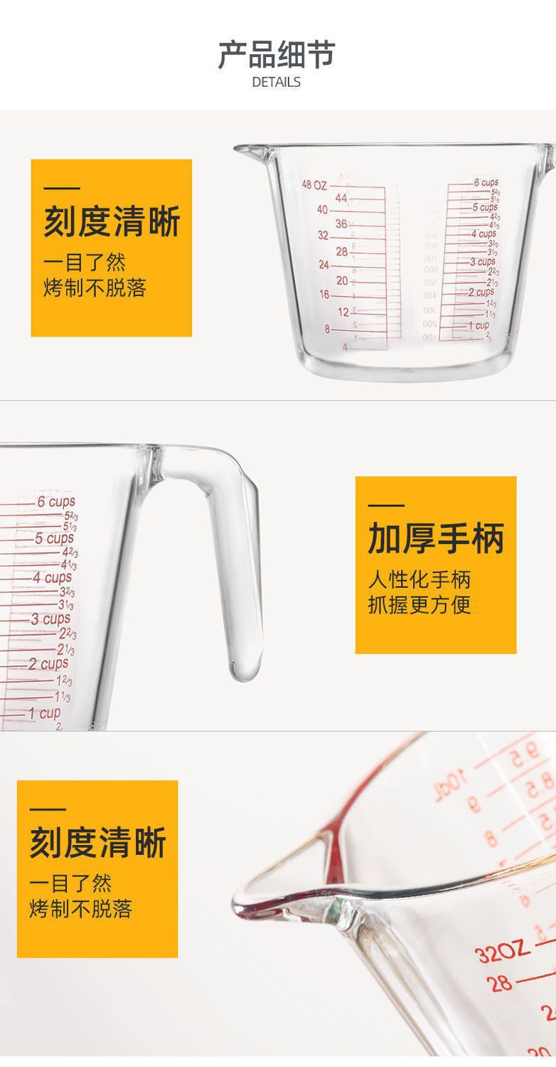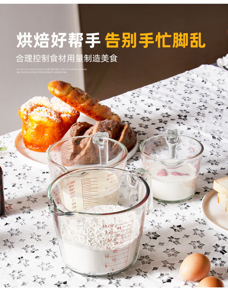 計量カップ付きスケール家庭用ベーキングツール電子レンジ大容量ストリップ厚い透明測定ガラスカップ