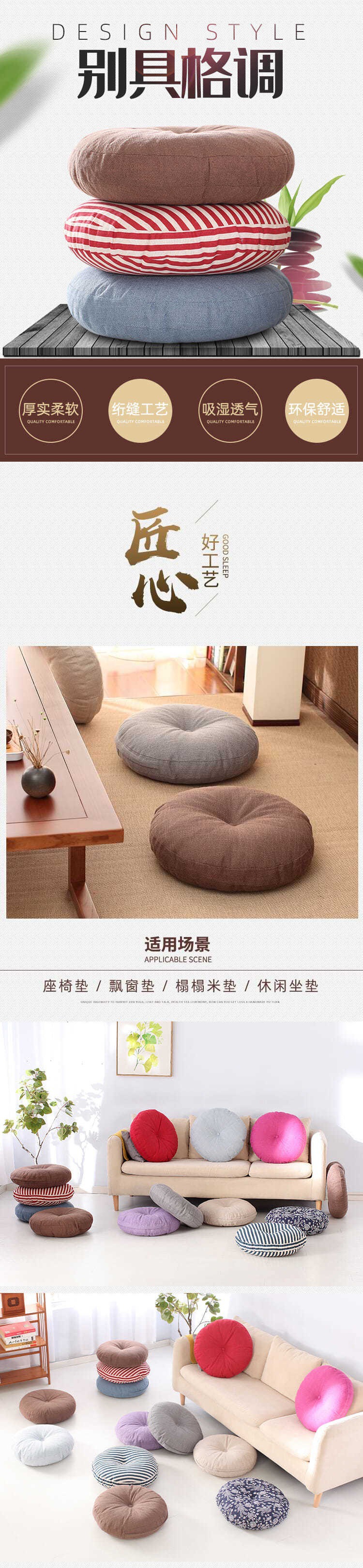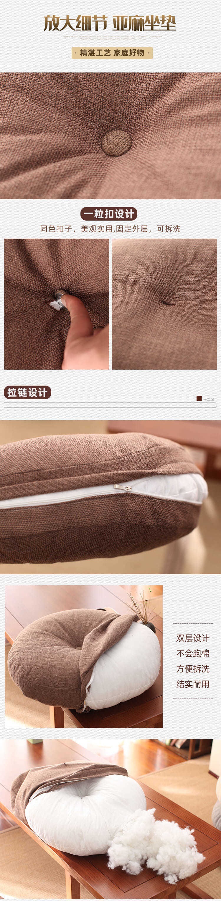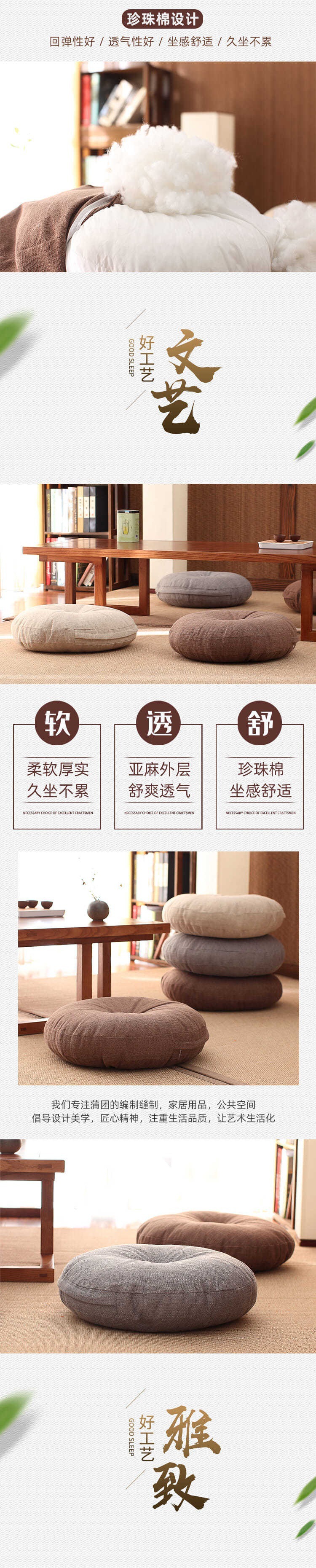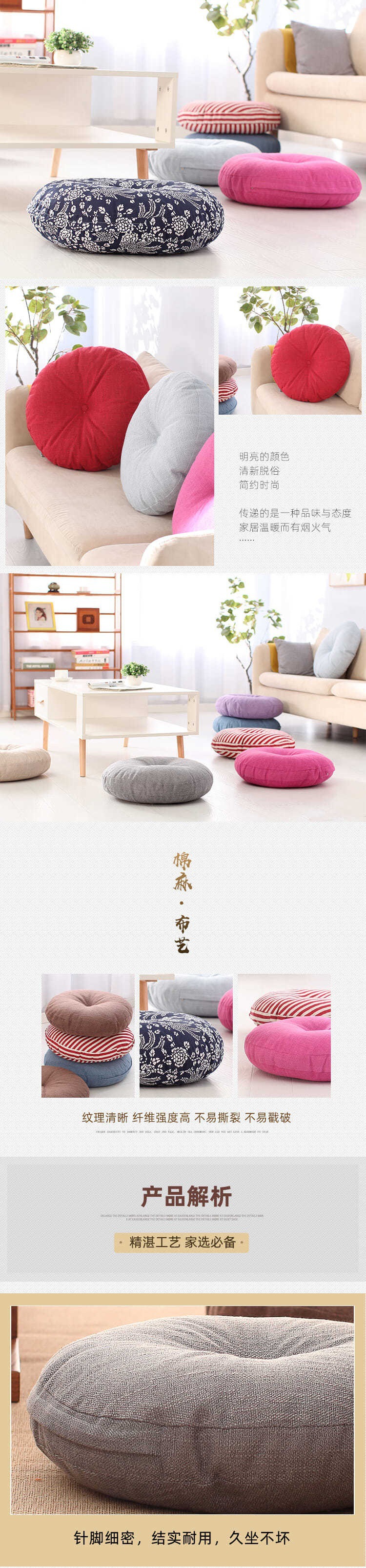 座布団の上の亜麻の蒲団は厚い円形の布芸のベランダの畳に座布団をかけます。