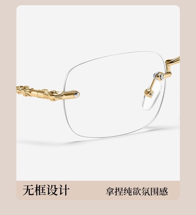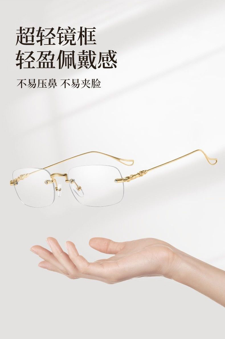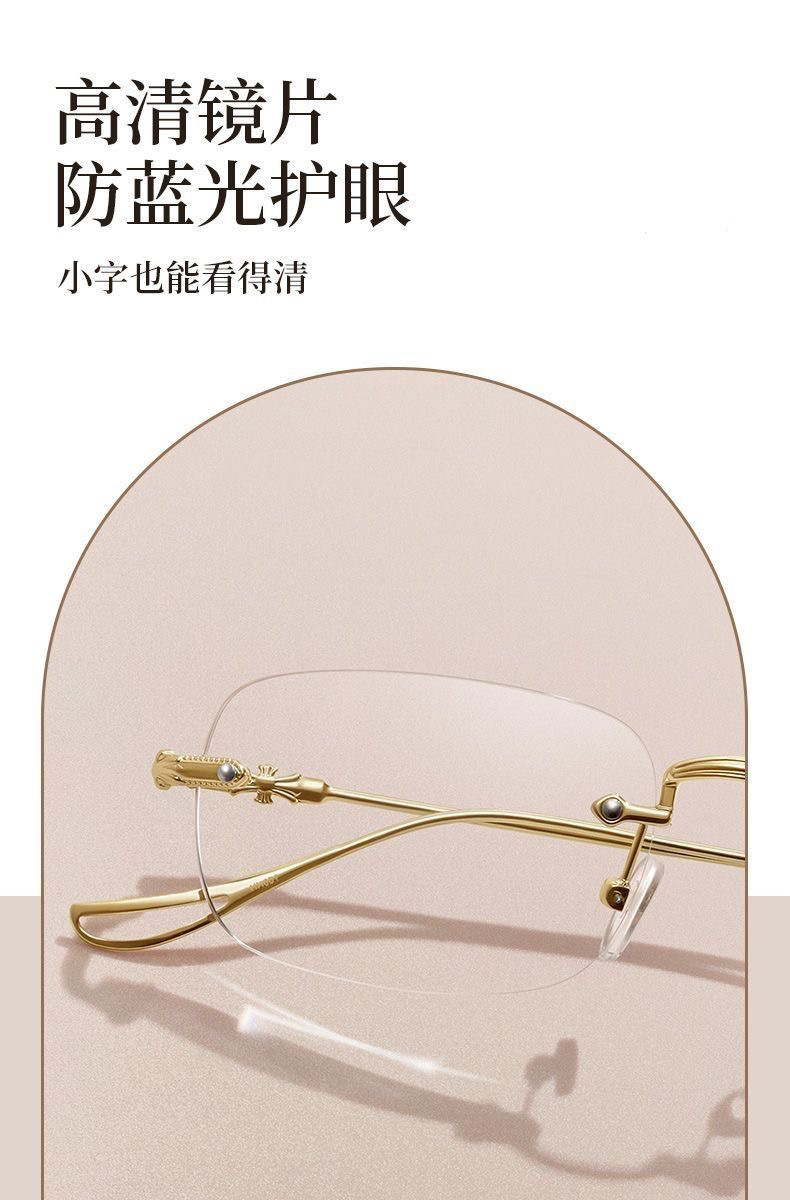 超軽量無枠老眼鏡中高年高精細ブルーライト抗疲労老光眼鏡レトロ高級老眼鏡