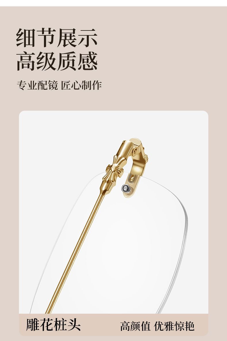 韩版男女网红平光镜小方框无框切边金属高清防蓝光老花镜抖音爆款