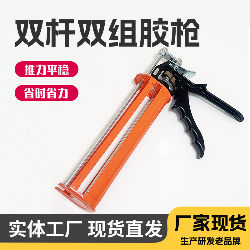 塑料玻璃胶枪黄色小双柱玻璃硬胶枪打胶压胶枪结构软胶枪美缝工具