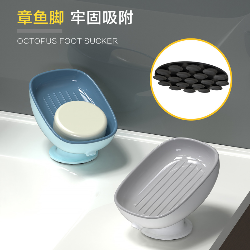 テーブルの上の吸盤の石鹸の箱は水を切って穴を開けないで家庭用の軽い贅沢な石鹸の箱の浴室のトイレのタコの足の収納の箱を打ちます。