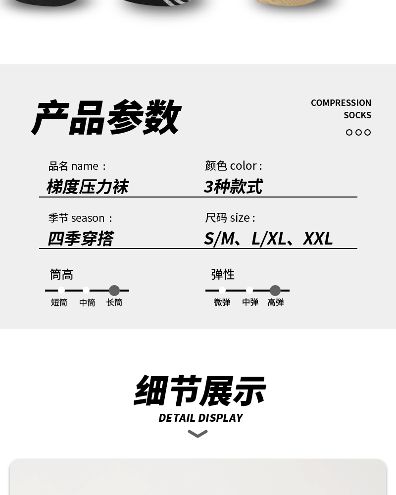 アマゾンの弾力性のある靴下は長い筒に乗って圧縮します。