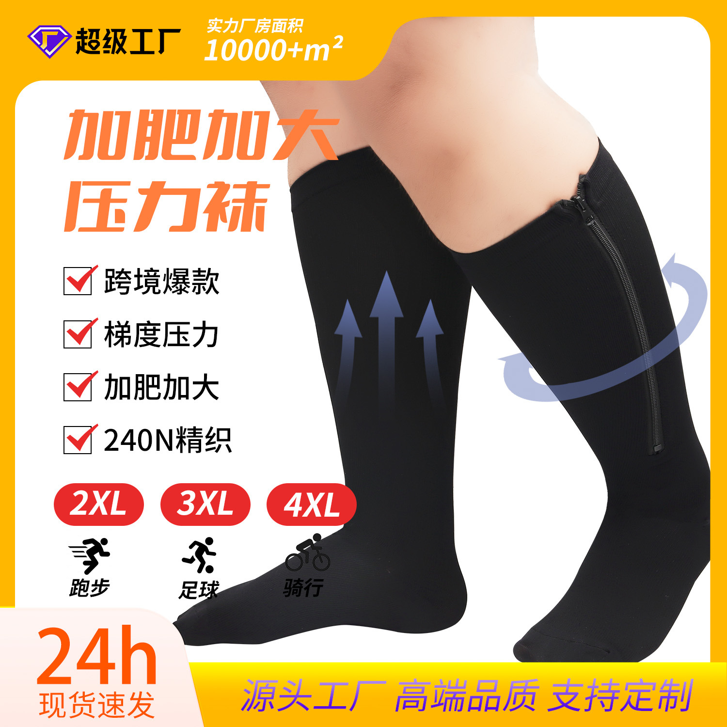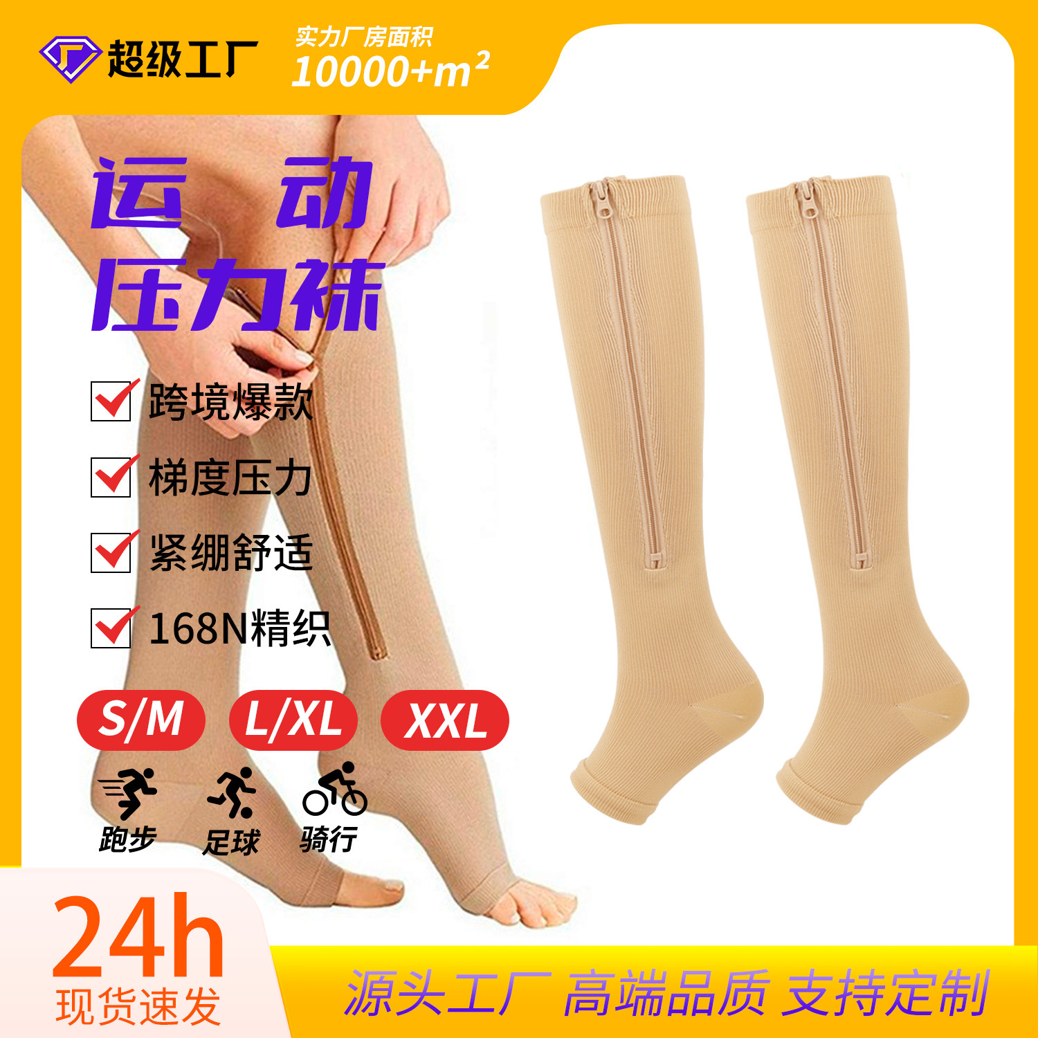 クロスボーダーランニングスポーツコンプレッションソックスふくらはぎ弾性ソックスコンプレッションソックスジッパーソックス