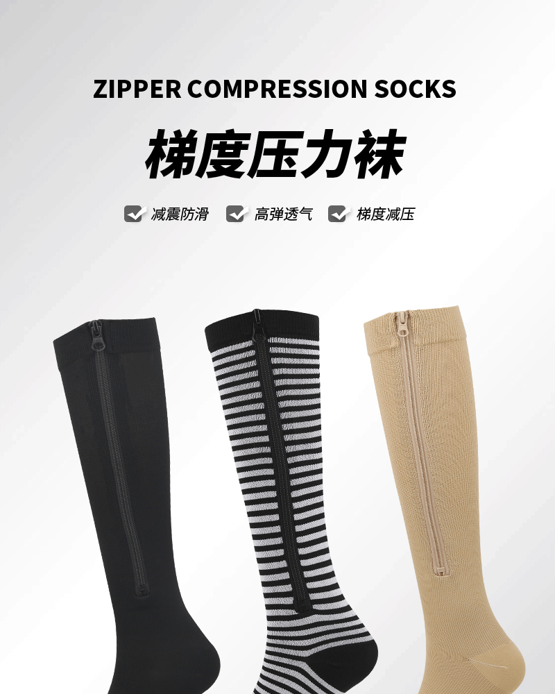 アマゾン爆型ストッキング運動圧力靴下圧縮ファスナー靴下zipsox弾力美脚靴下包足指金