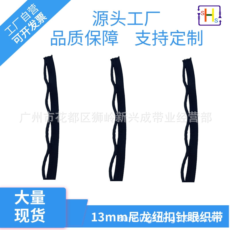 厂家直销尼龙纽扣织带子母带针眼织带黑色