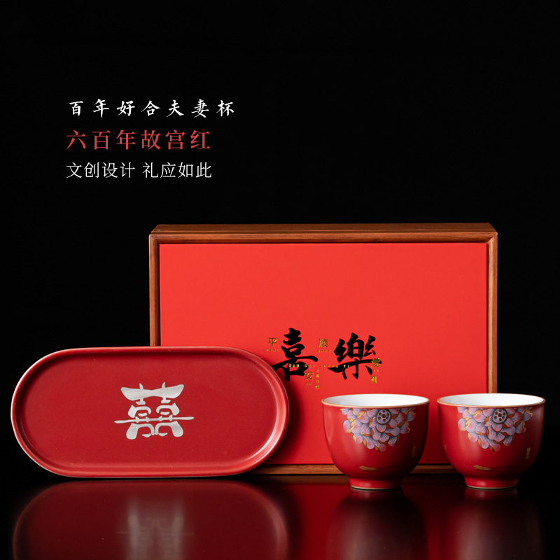カップル用の婚約ギフト、中国風の新婚夫婦のお茶を飲むためのセラミックティーカップ、親友用のカップ、高級ギフトボックス