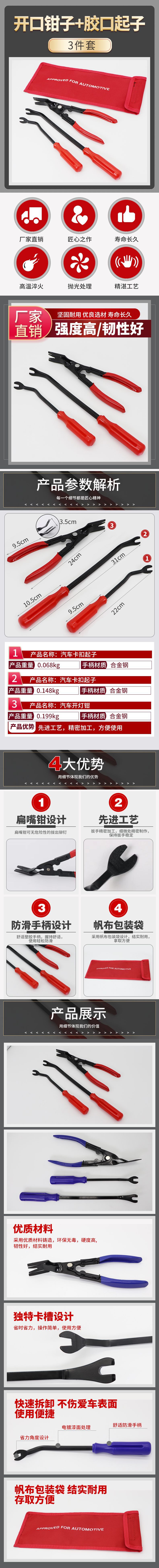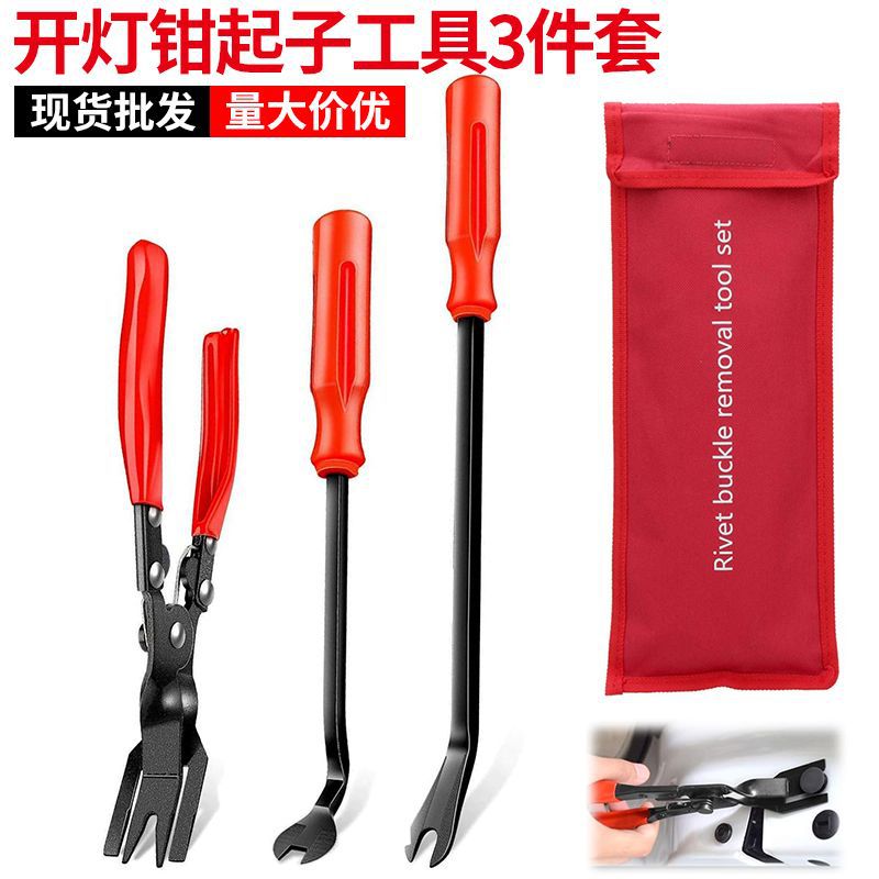 跨境批发汽保工具开灯钳胶扣起子3件拆塑料卡扣汽车下压式胶扣钳