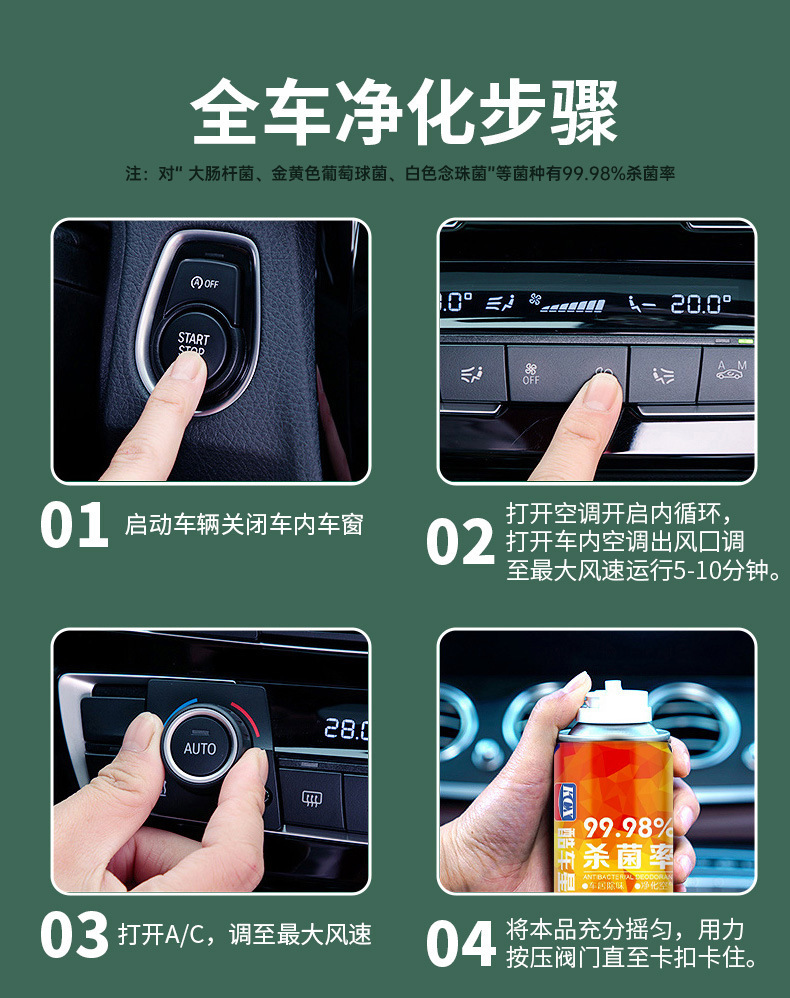使用方法:1.使用空调杀菌除臭剂时,请先将空调关闭;