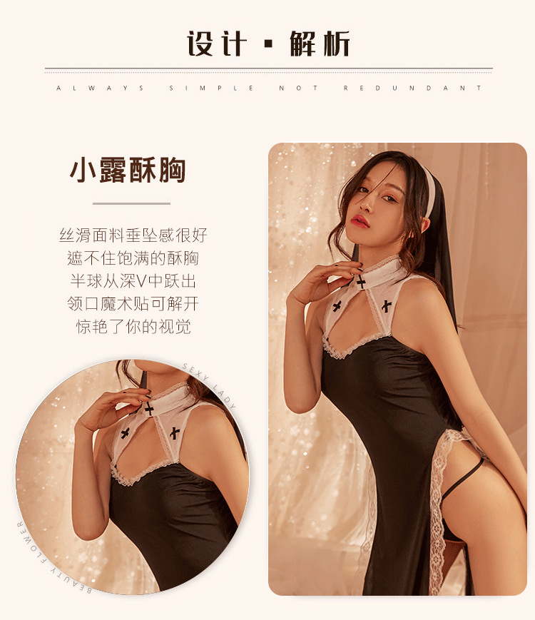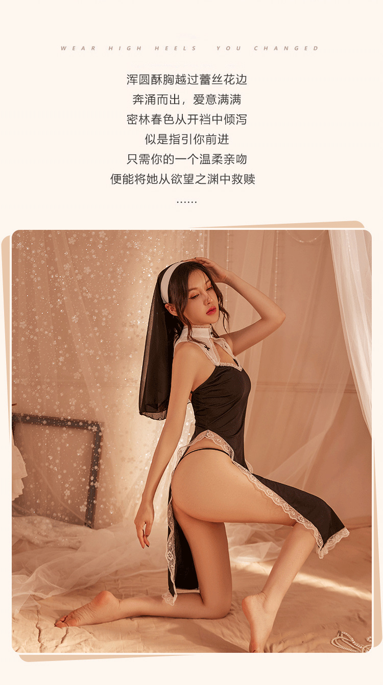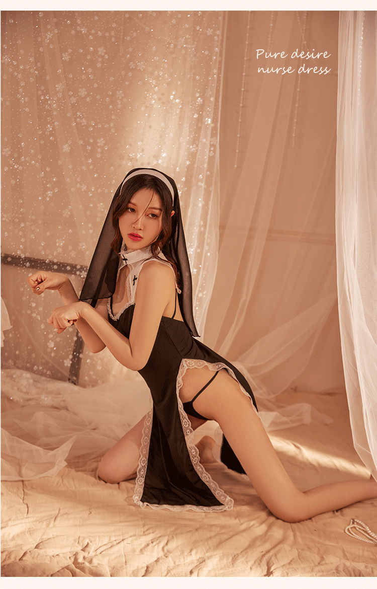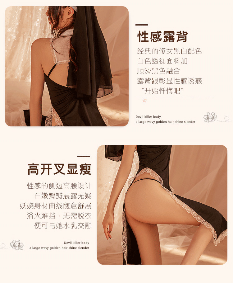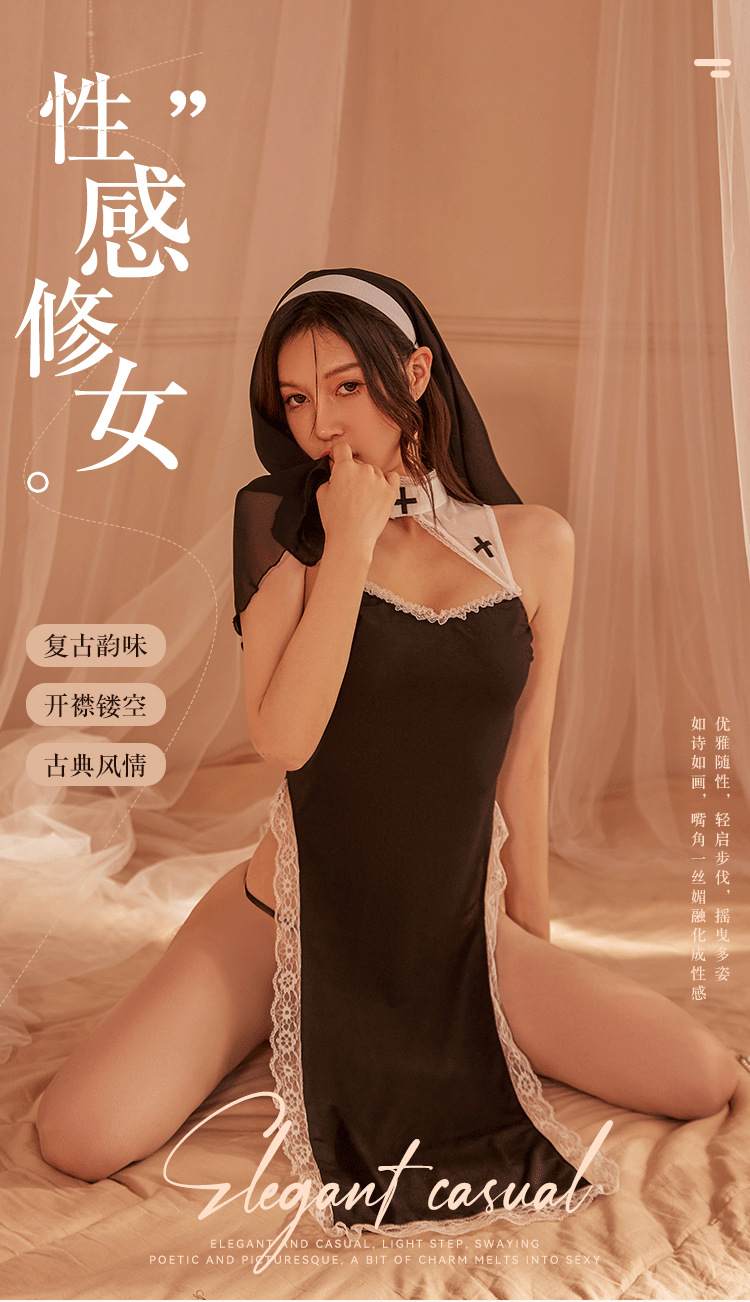 夜は香の情緒の下着のセクシーな修道女の服の役を聞いて透かし彫りの制服の家庭のスリットの激情のパジャマの670を演じます。