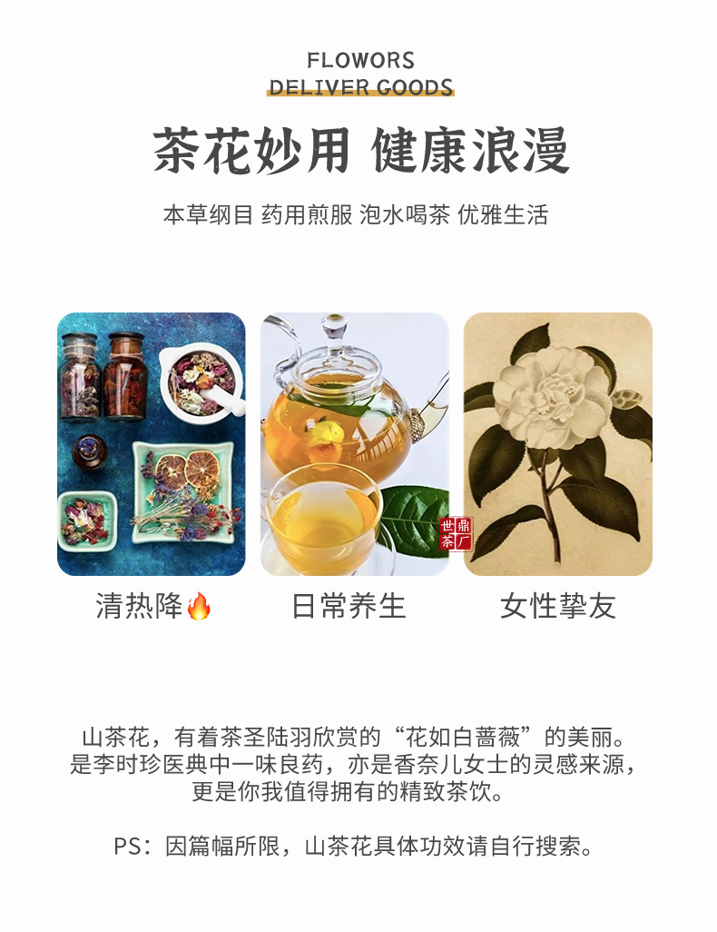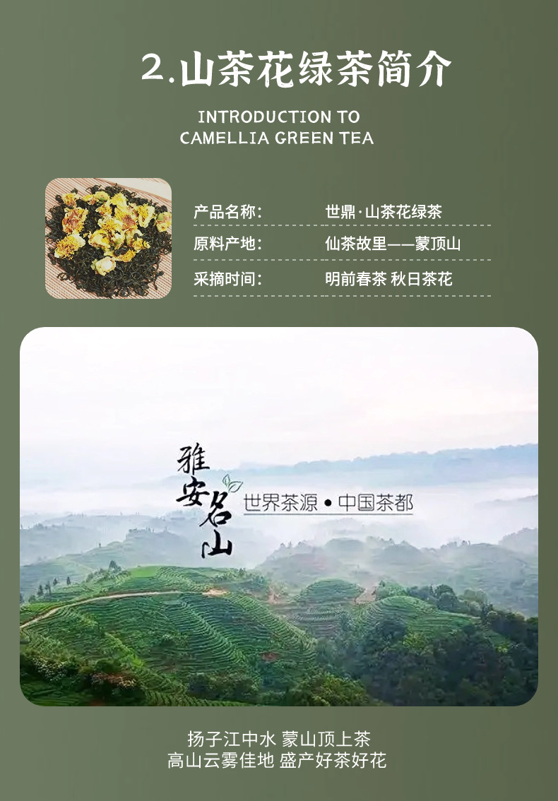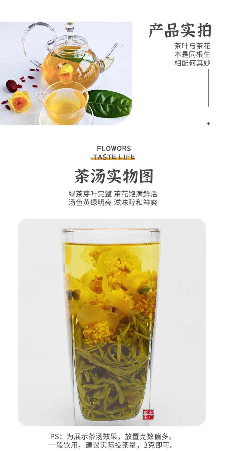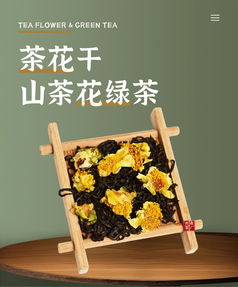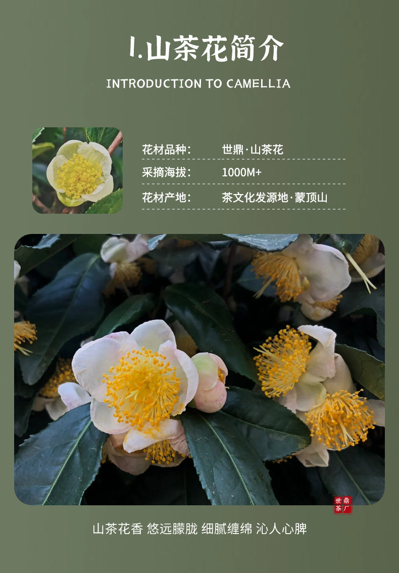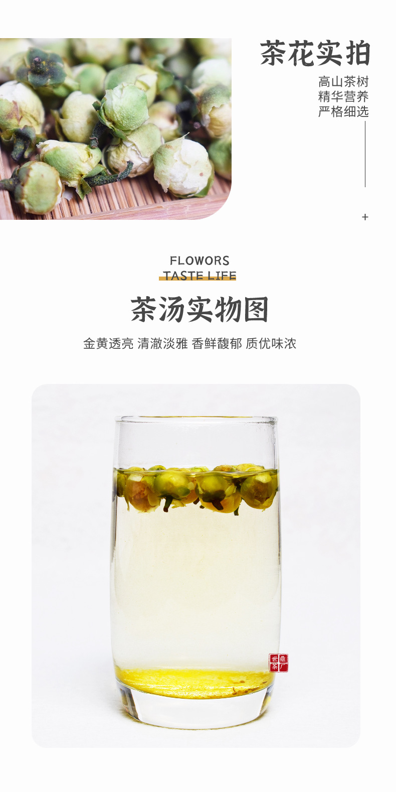 パッケージ仕様 ツバキの花のドライフラワー (バルクアルミフィルム袋1斤),ツバキの花の緑茶 (ばら積みのアルミニウムの膜の袋の1斤),ツバキの花緑茶鉄缶250g/1缶 (2缶の合計1斤を撮って美しい手提げ袋を送る)